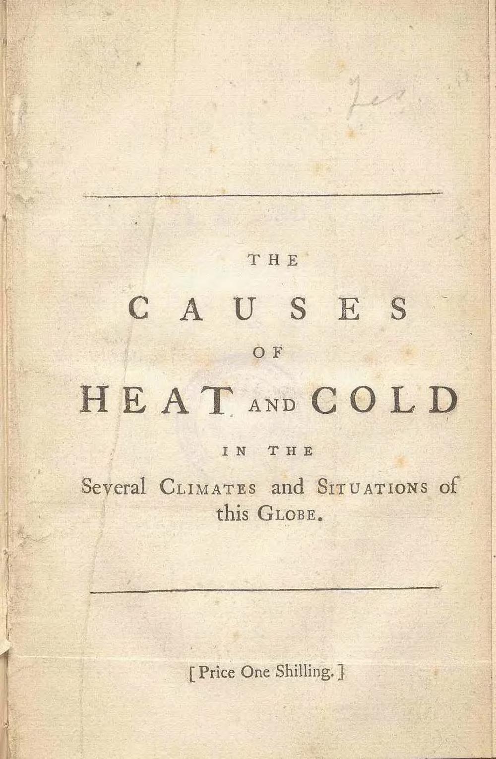 The Causes Of Heat And Cold In The Several Climates and Situations of this Globe : so far as they depend upon the Rays of the Sun, Considered In Order to shew that the Difference of Heat and Cold in other Countries may be nearly ascertained by a Thermometer : as it was Read to the Royal Society / by T. Sheldrake, Author of the Herbal