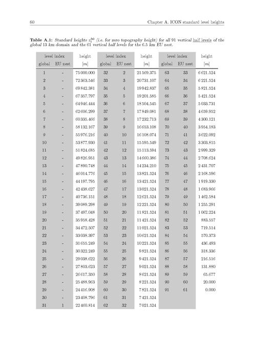 A. ICON standard level heights