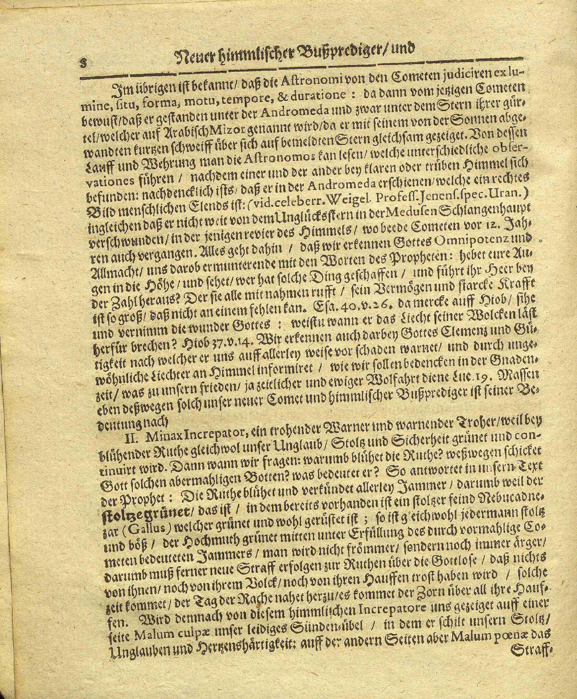 Neuer Himmlischer Bußprediger/ Und Abermahliger Comet : Auß Ezech. 7. v. 10. Alß Perspicax Informator, Minax Increpator, und Effic ax Excitator, Vorgestellet ; Neben Anfügung sieben anderer Bußpredigten/ darinnen die Himmels-Ruthe und Comet wird betrachtet/ ut Divinus Clarigator, Peccatorum Objurgator, Iræ & Pœnarum Exaggerator, wie auch Novissimus Monitor, & Judicii Extremi Præcursor / Auß unterschiedlichen Buß-Texten von Joh. Ludovico Hartmanno, D. Rotenb. Superint.