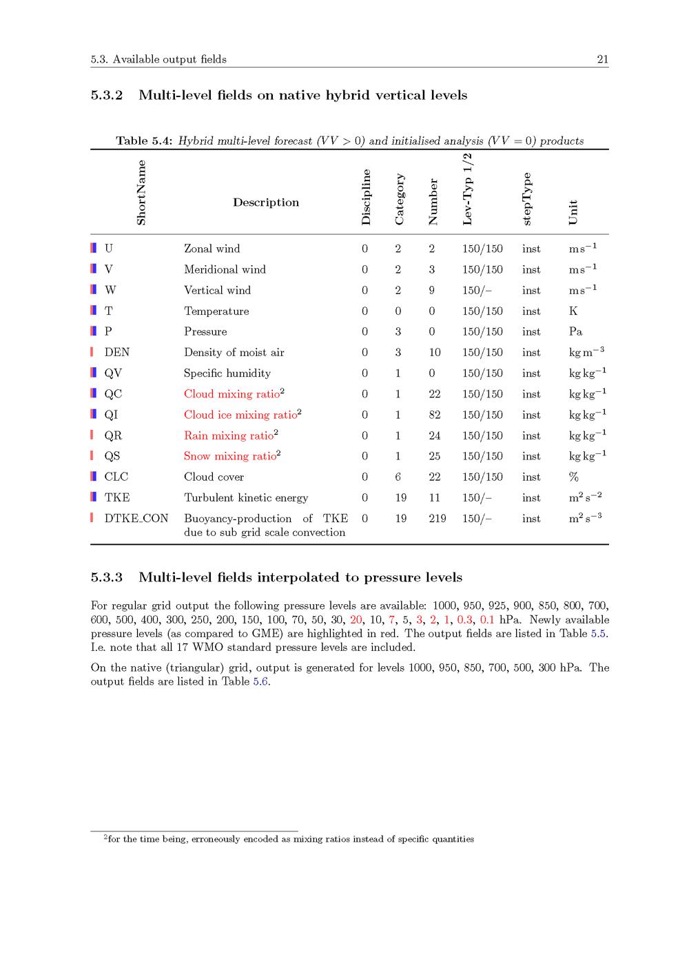 5. Avialable output fields: Forecast runs