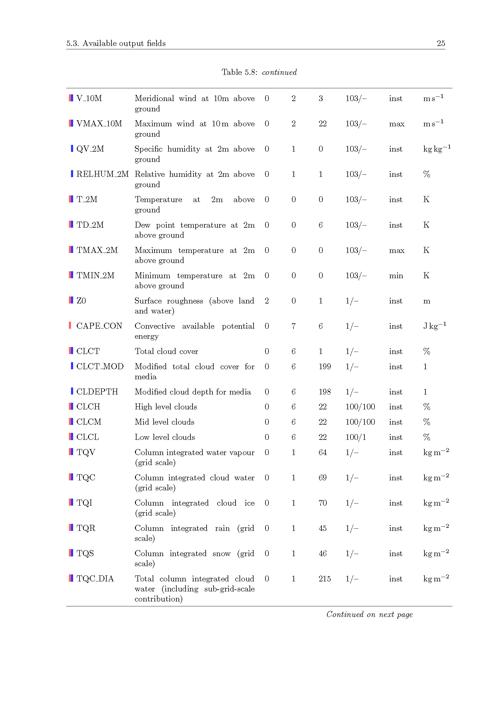 5. Avialable output fields: Forecast runs