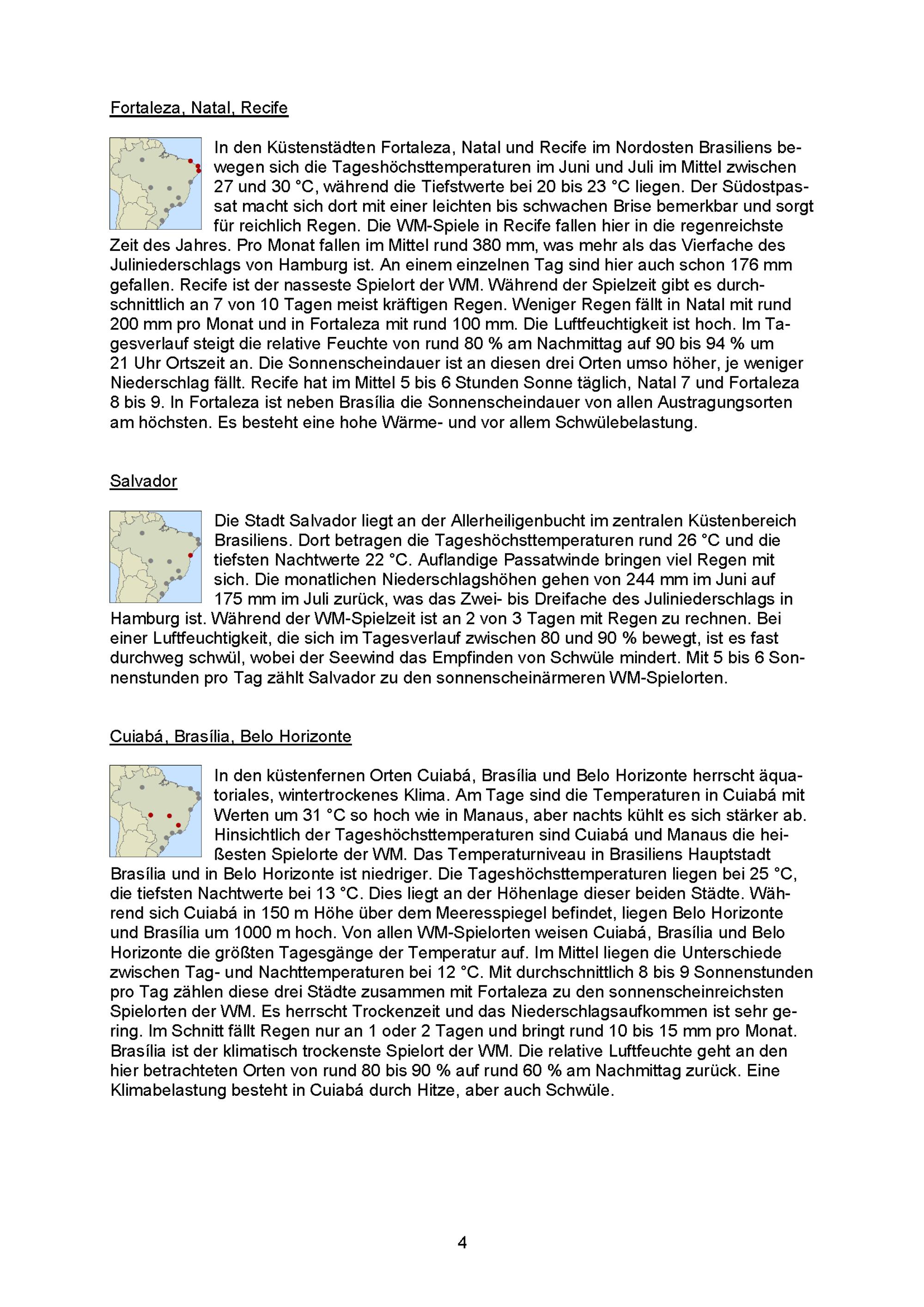 Das Klima an den Spielorten der Fußball-WM 2014 im Juni und Juli