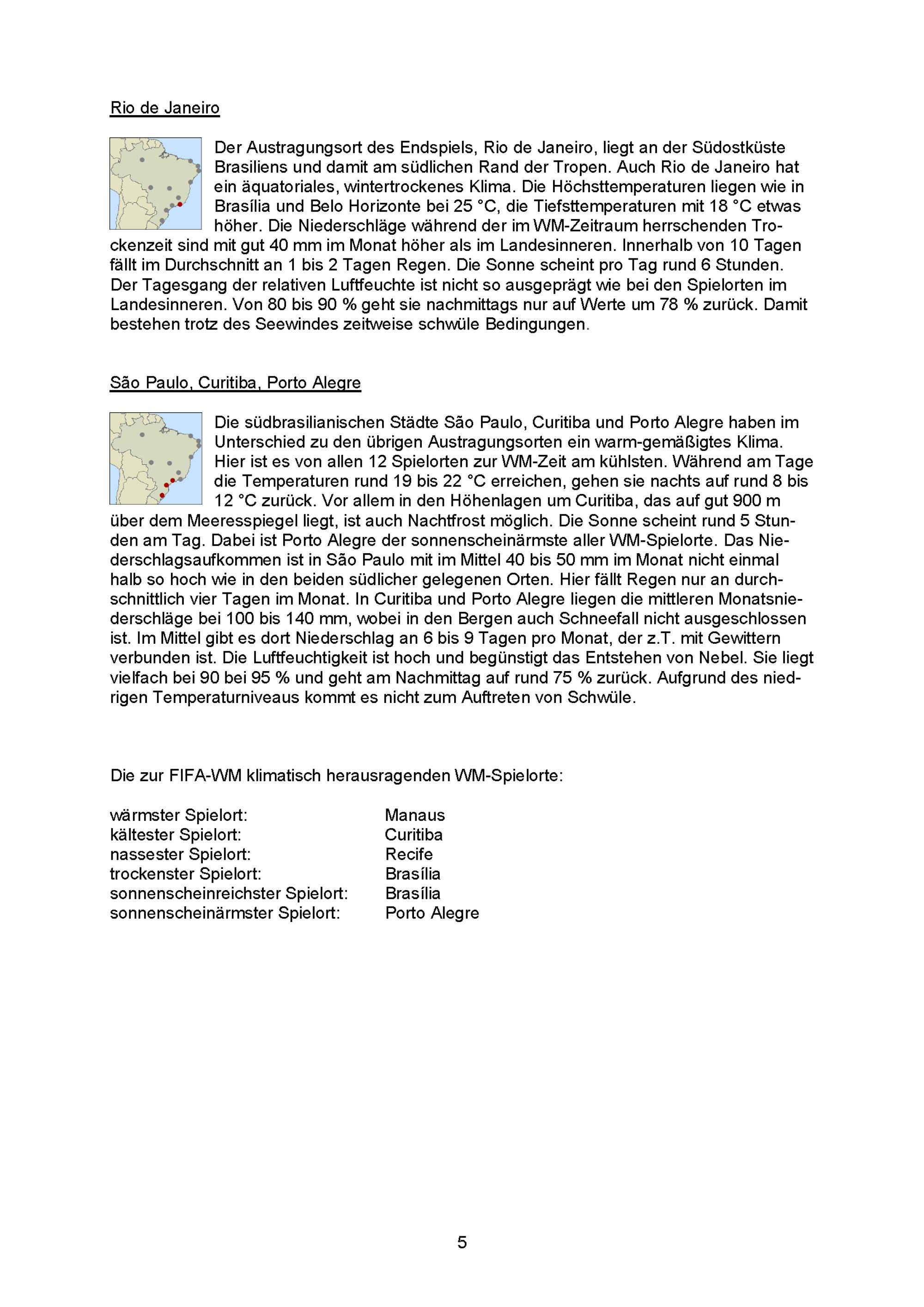 Das Klima an den Spielorten der Fußball-WM 2014 im Juni und Juli