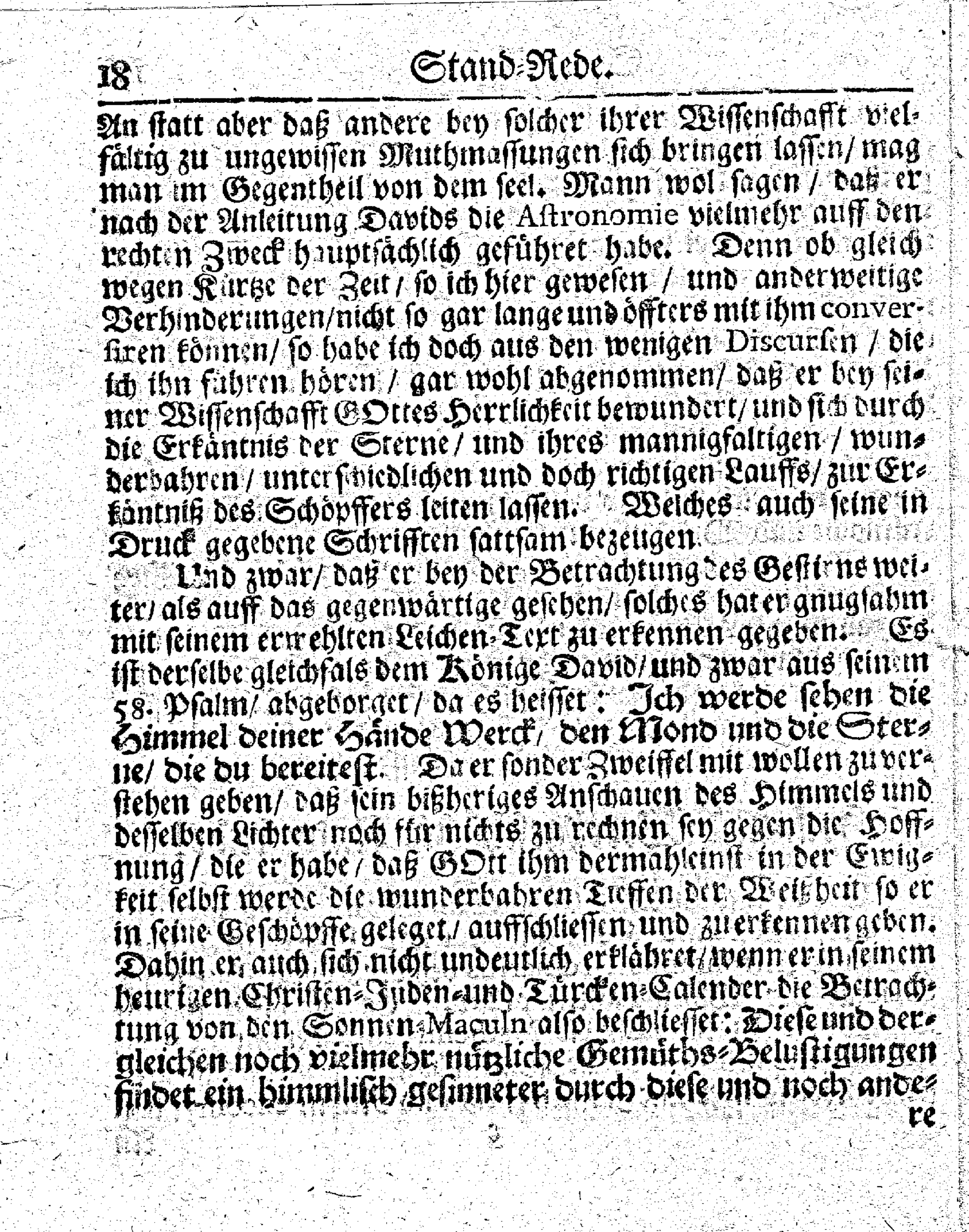 Die Stern-Kunst, Nach ihrem Mißbrauch und rechten Gebrauch, Wolte, Als der Wohl-Edle und Wohlgelahrte Herr, Herr Gottfried Kirch, Astronomus ordinarius bey der Kön. Preuß. Societät der Wissenschafften, Den 25sten Julii 1710 seelig verschieden, und darauff den 29ten bey ansehnlichem Leichen-Conduct christlich zur Erden bestattet wurde : in einer Stand-Rede kürtzlich betrachten, und auff Begehren dem Druck übergeben / Johann Gustav Reinbeck