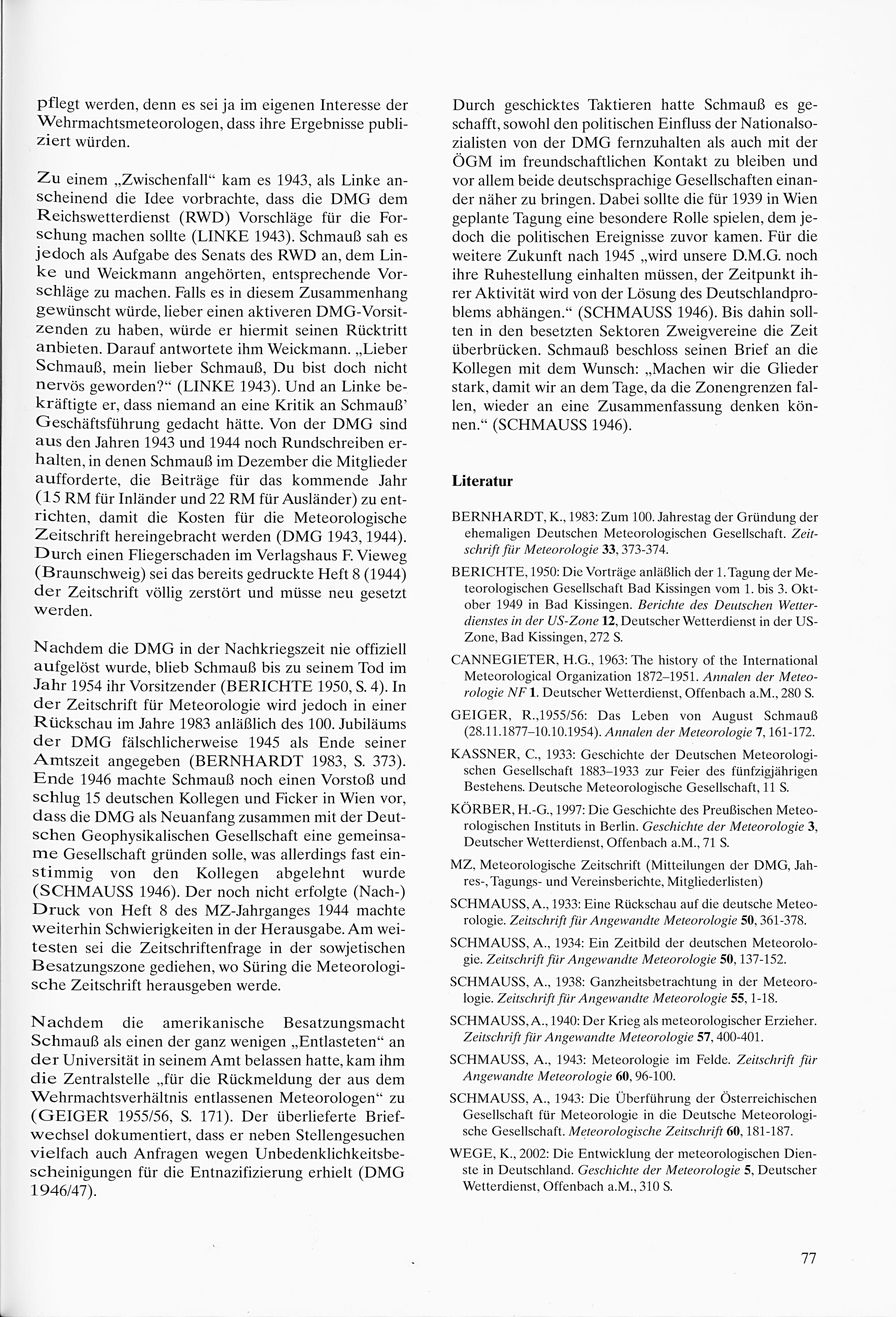 6. Heinrich Quenzel: Chronik der Meteorologischen Gesellschaften in Deutschland nach dem Zweiten Weltkrieg bis 1990