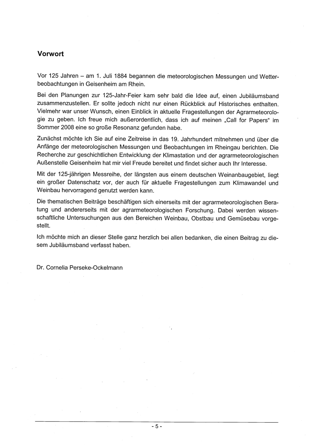 125 Jahre Wetterstation Geisenheim 1884 - 2009 : Jubiläumsband mit Beiträgen aus der agrarmeteorologischen Forschung und Beratung / hrsg. von Cornelia Perseke-Ockelmann