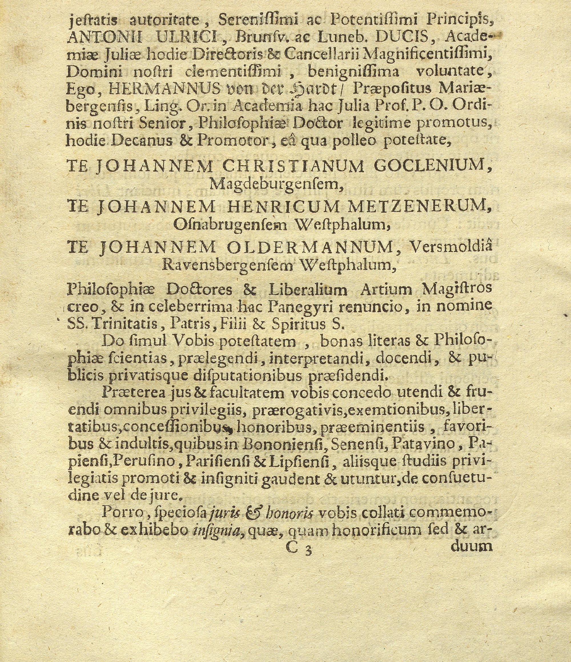 De Nostri Temporis Prodigiis Rectore Academiæ Juliæ Magnificentissimo Serenissimo ac Potentissimo Principe Antonio Ulrico Brunsv. Ac Lun. Duce In Promotione trium Philosophiæ Doctorum A. MDCCVII. die IV. Julii qui Ulrico facer In Magno Julæo / dixit Hermannus von der Hardt, Præpositus Mariæbergensis Ling. Or. Professor Publicus
