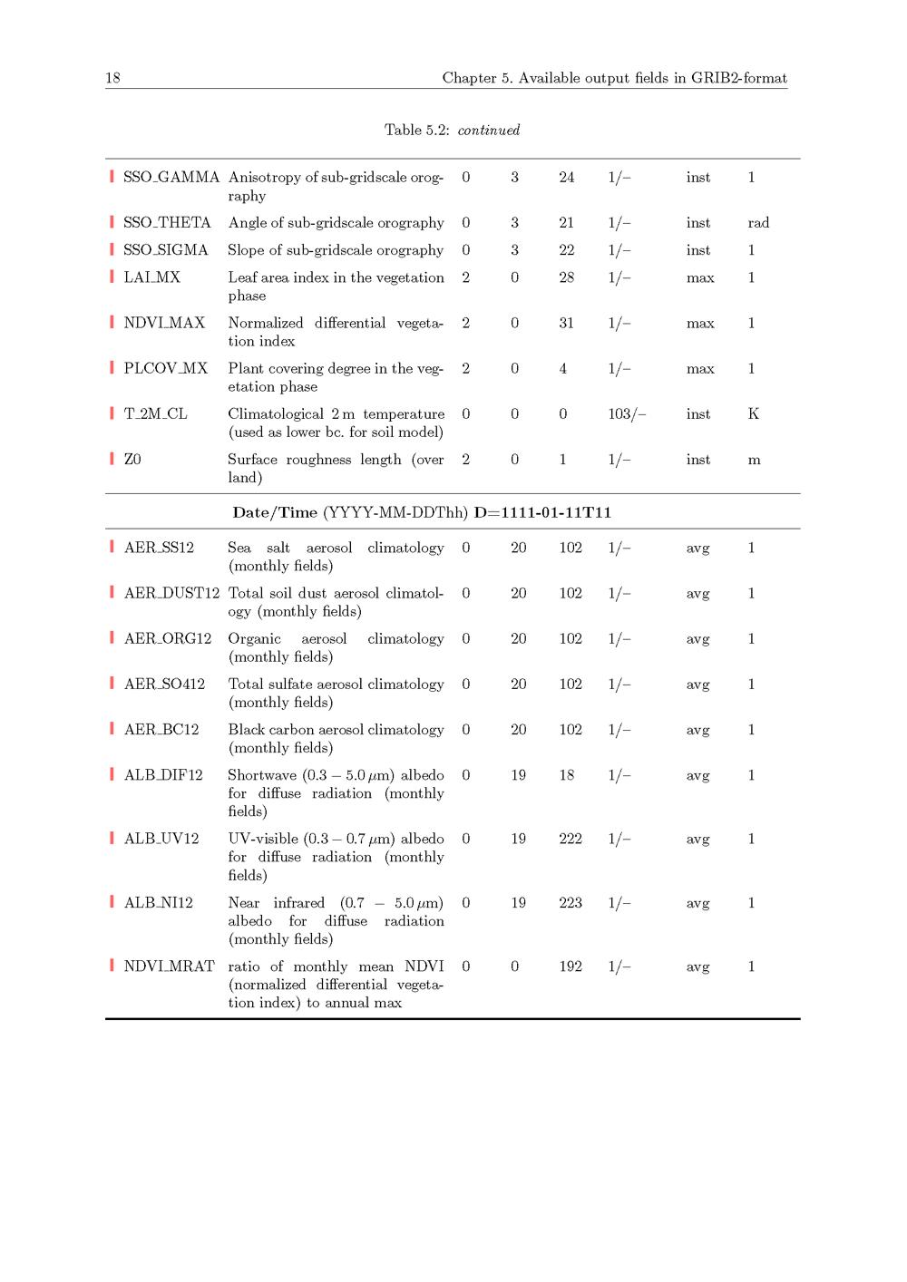 5. Avialable output fields in GRIB2-format