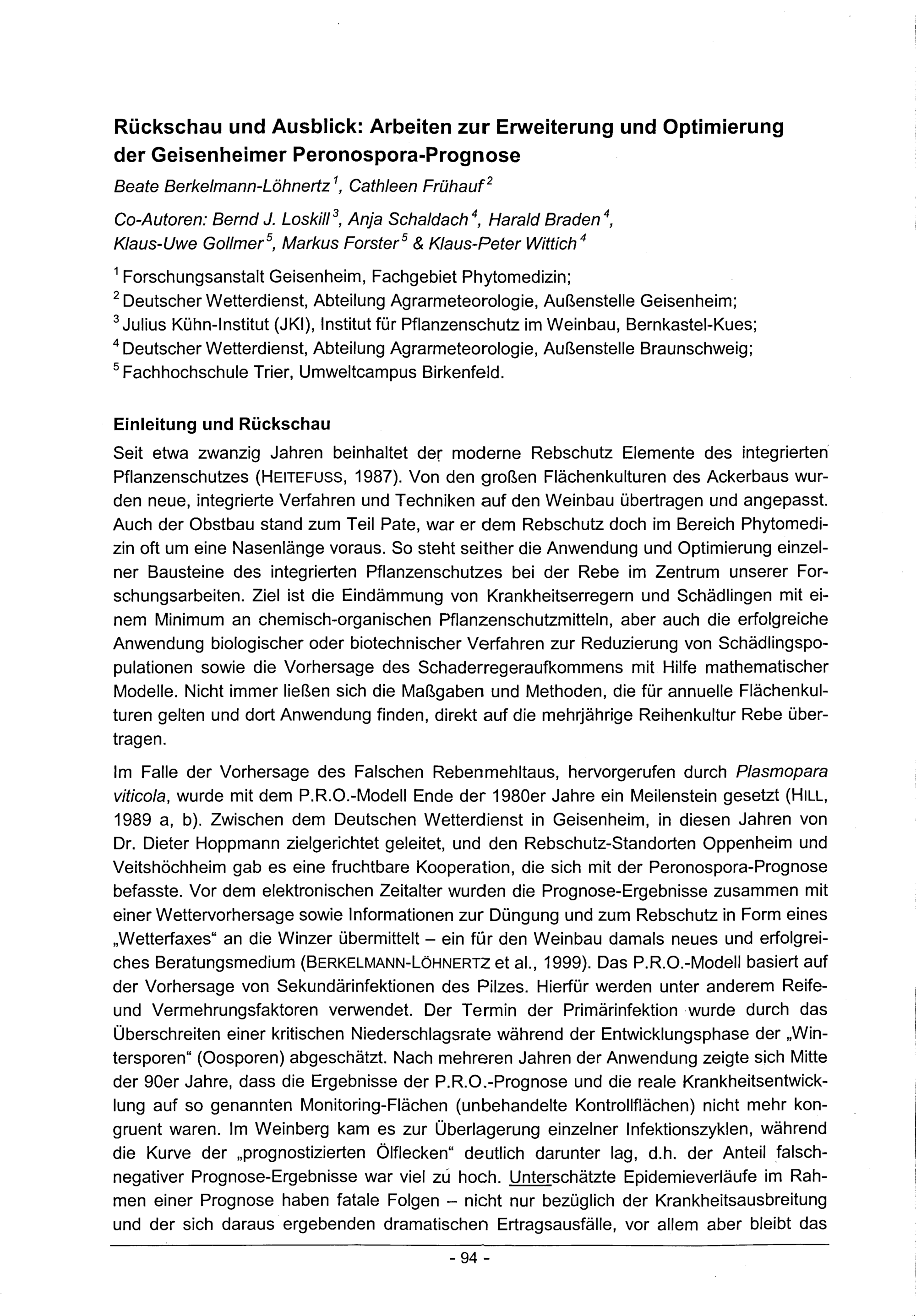 125 Jahre Wetterstation Geisenheim 1884 - 2009 : Jubiläumsband mit Beiträgen aus der agrarmeteorologischen Forschung und Beratung / hrsg. von Cornelia Perseke-Ockelmann