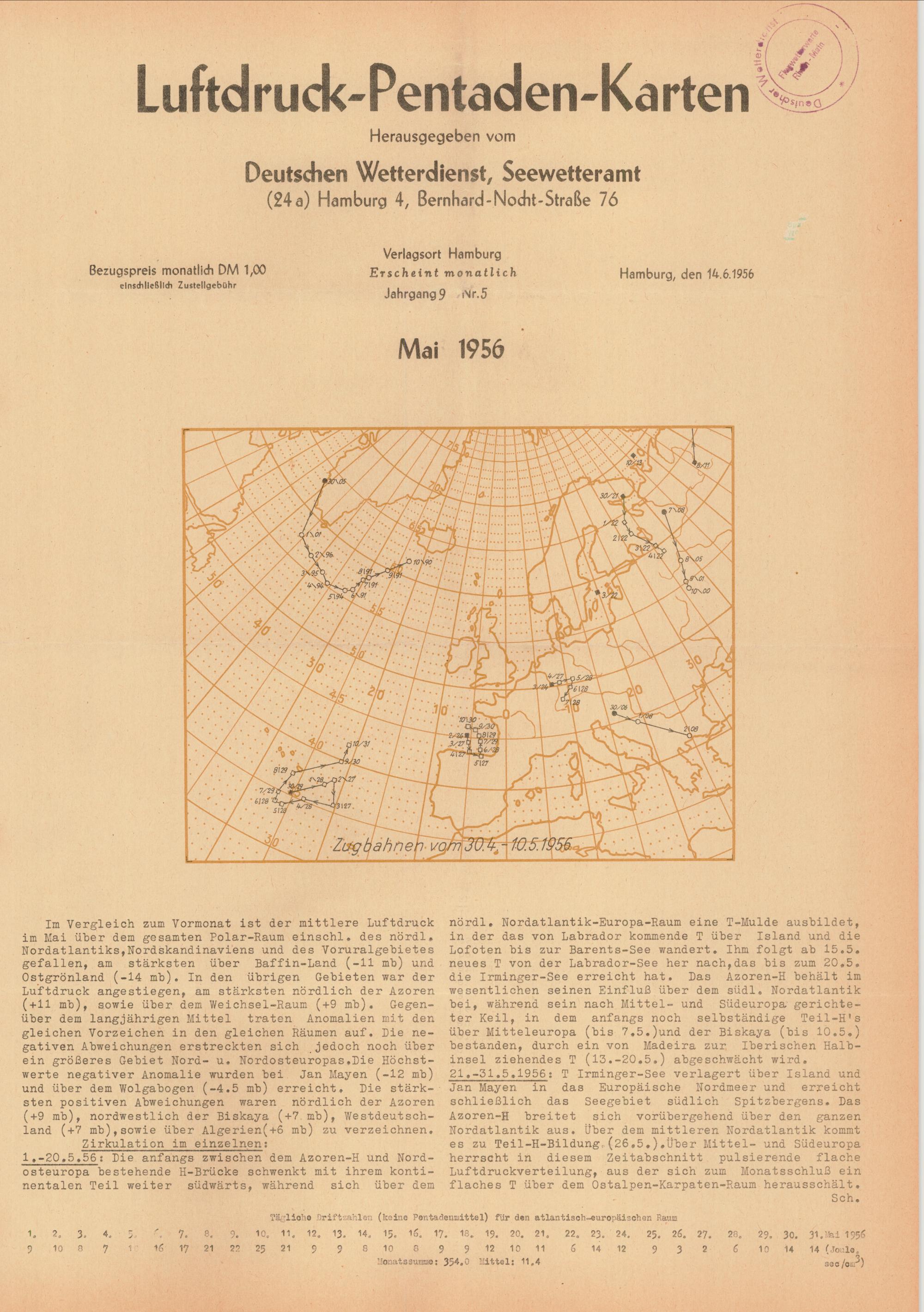 Luftdruck-Pentaden-Karten / hrsg. vom Meteorologisches Amt für Nordwestdeutschland