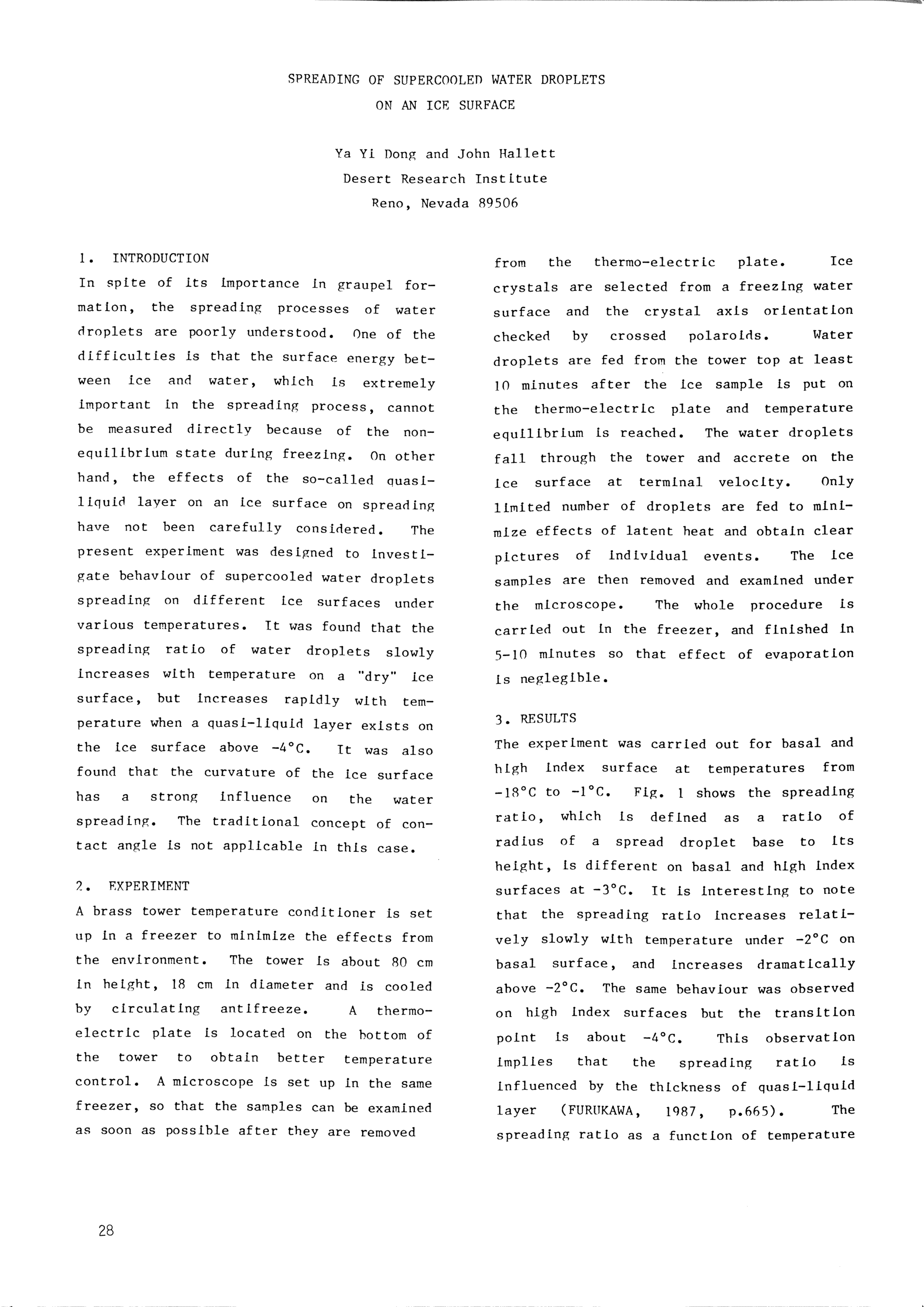 Session 1: Cloud Microphysics I: Laboratory Studies