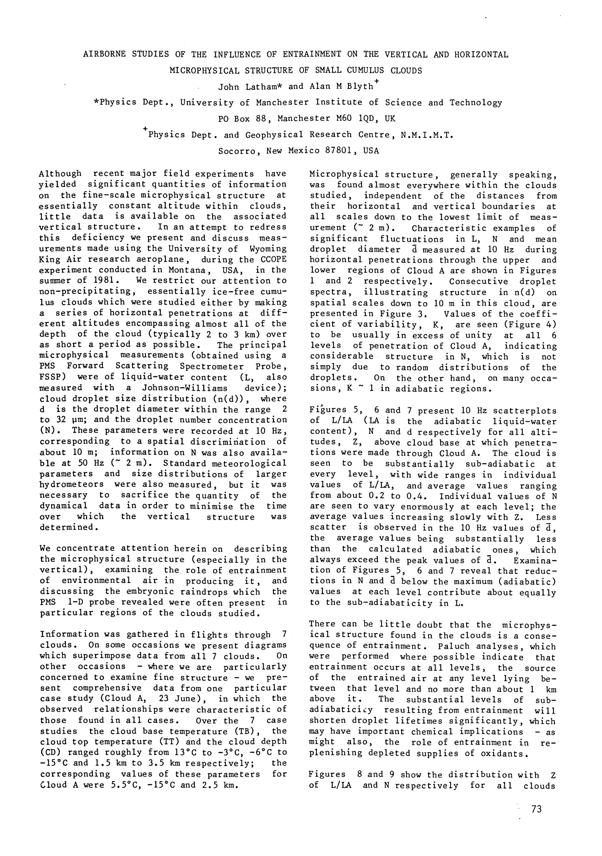 Session 3: Cloud microphysics III. Entrainment and mixing