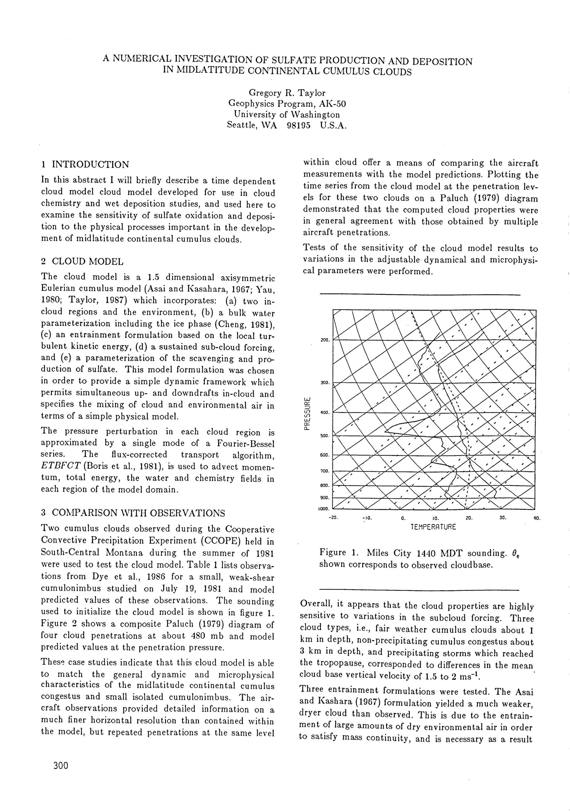 Session 7: Cloud chemistry and acidic precipitation - II. Numerical modeling -
