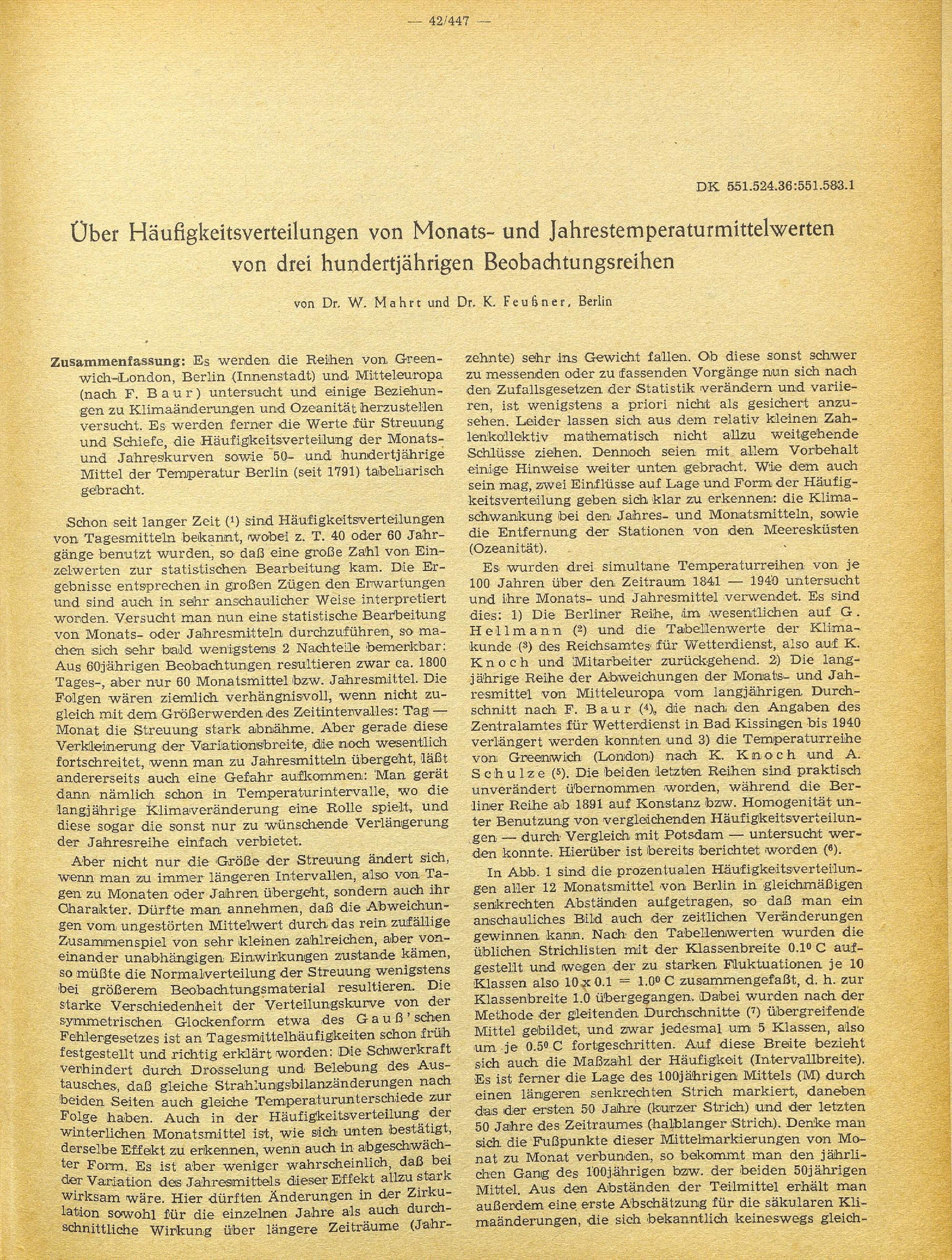 Knoch-Heft : [Herrn Professor Dr. Karl Knoch zum 70. Geburtstage am 19. Januar 1953 gewidmet von seinen Mitarbeitern, Schülern und Freunden] / Deutscher Wetterdienst in der US-Zone