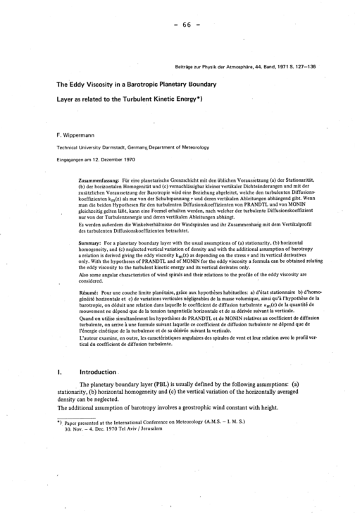 The planetary boundary-layer of the atmosphere / F. Wippermann