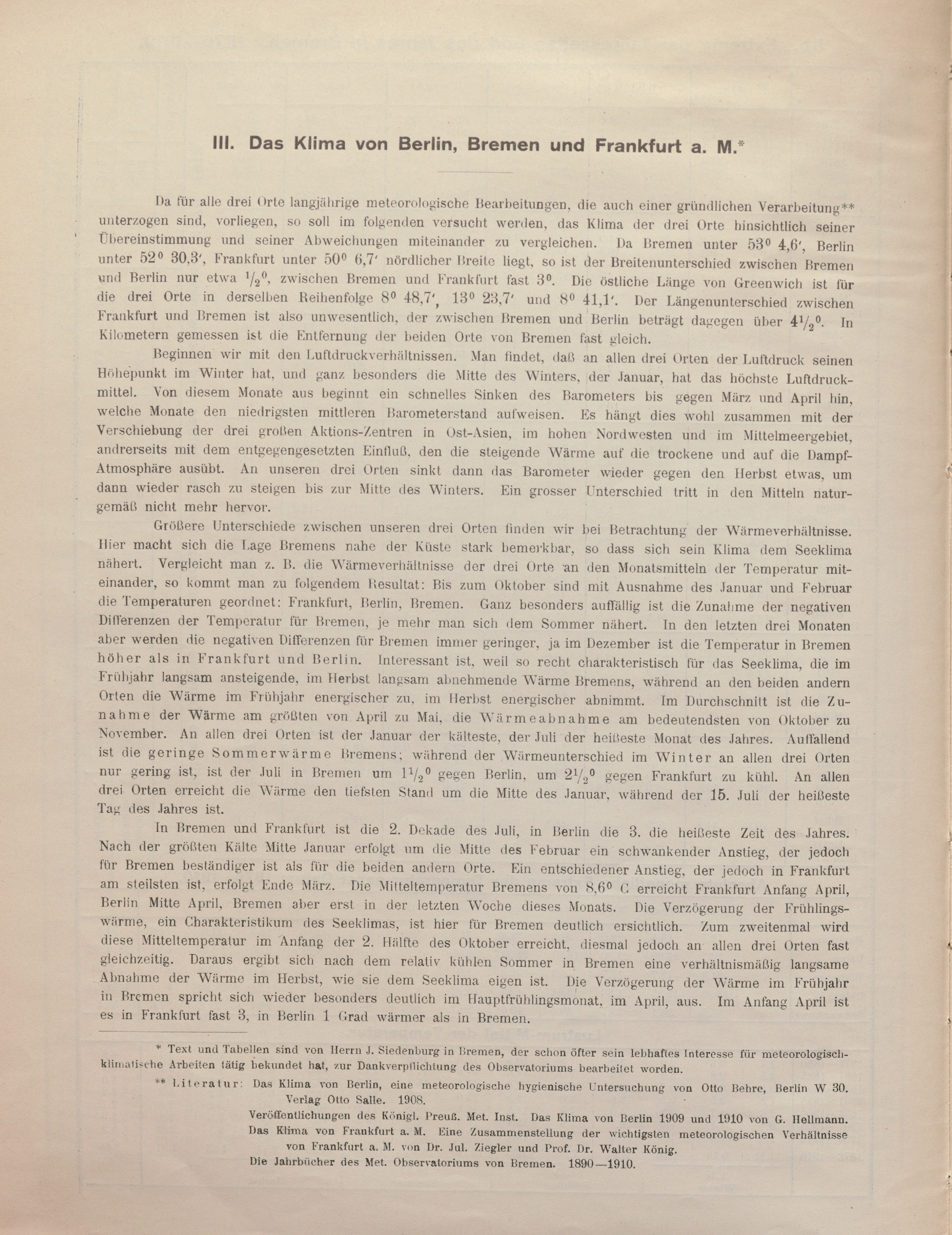 III. Das Klima von Berlin, Bremen und Frankfurt a. Main