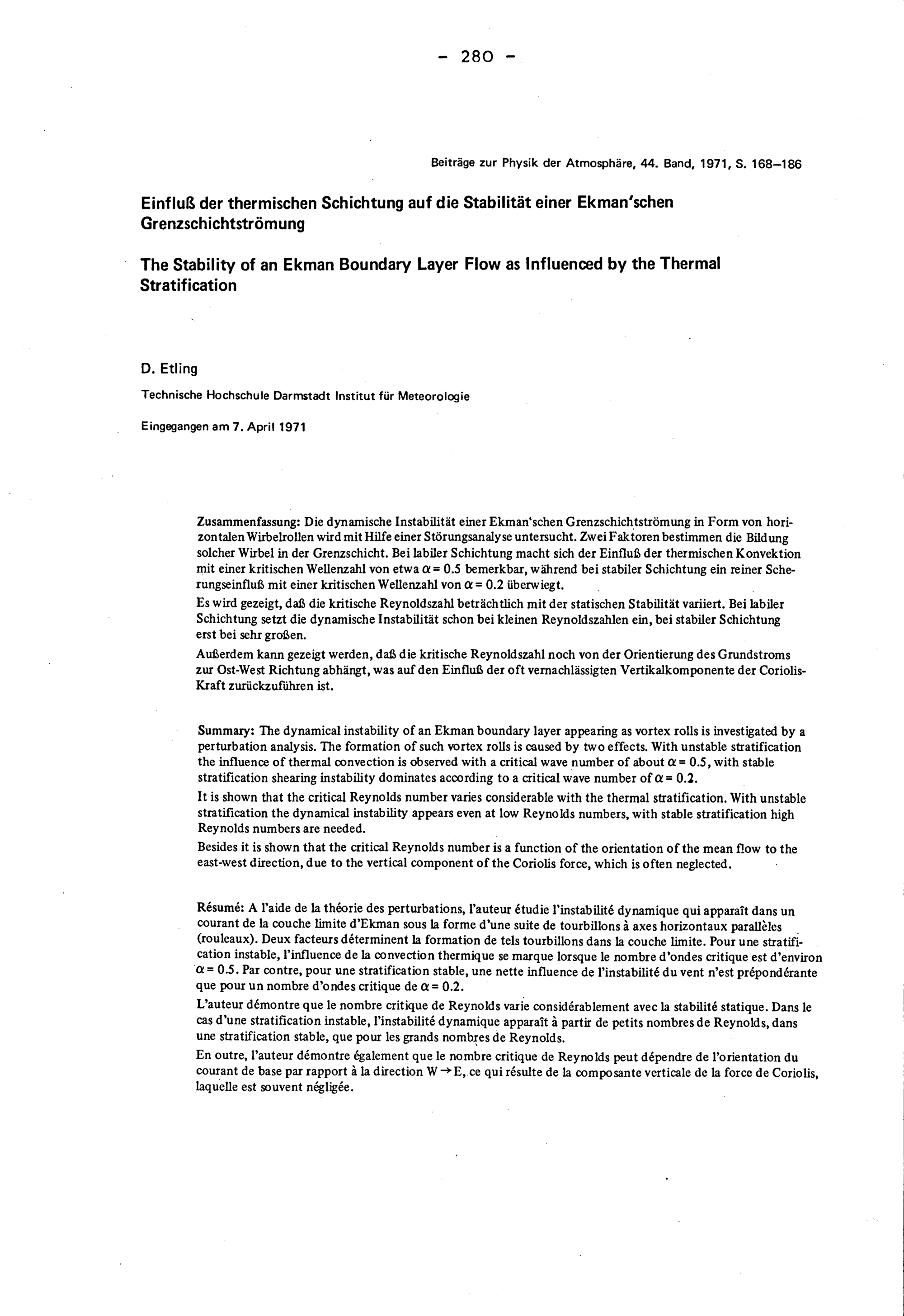 The planetary boundary-layer of the atmosphere / F. Wippermann