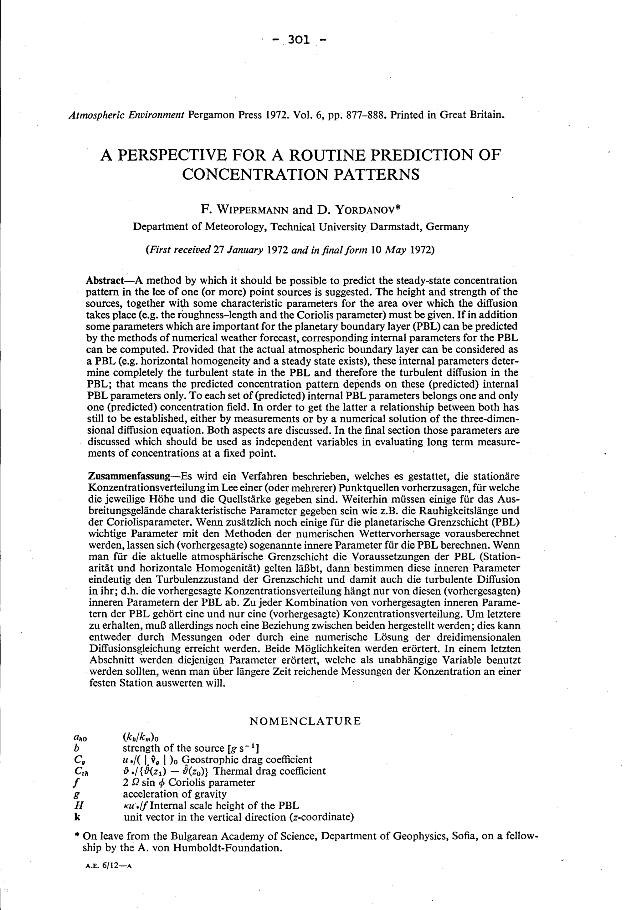 The planetary boundary-layer of the atmosphere / F. Wippermann