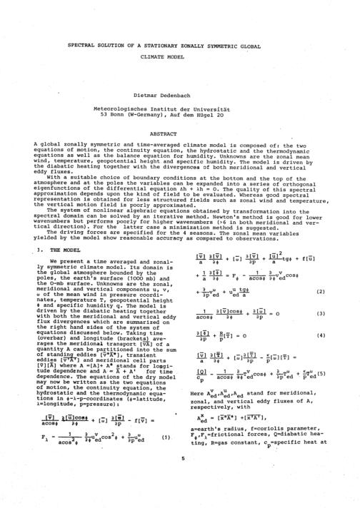 Session 1: Models for Numerical Weather Prediction and/or Simulation of the General Circulation Chairman: J. Smagorinsky, GFDL Princeton, USA