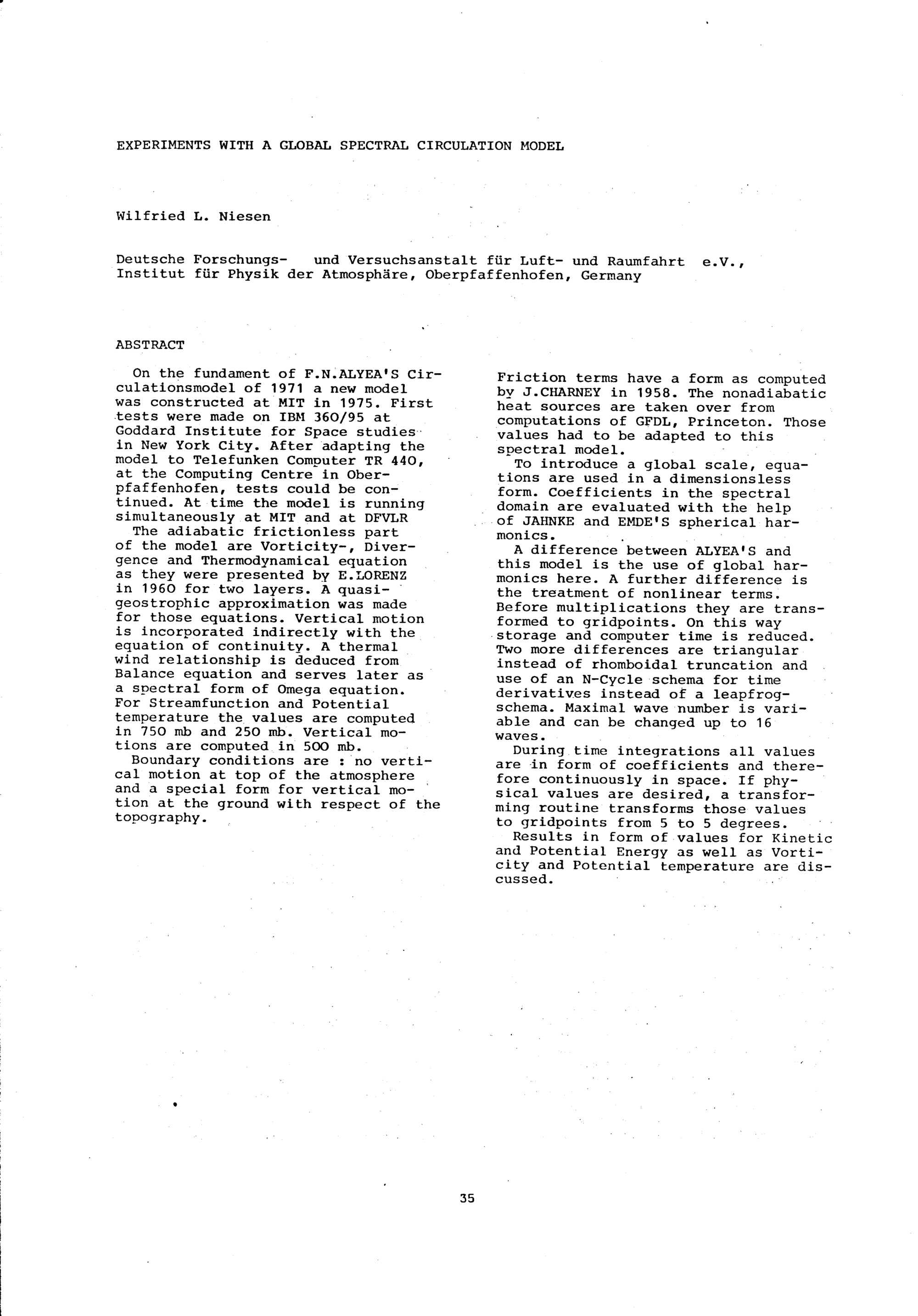 Session 1: Models for Numerical Weather Prediction and/or Simulation of the General Circulation Chairman: J. Smagorinsky, GFDL Princeton, USA