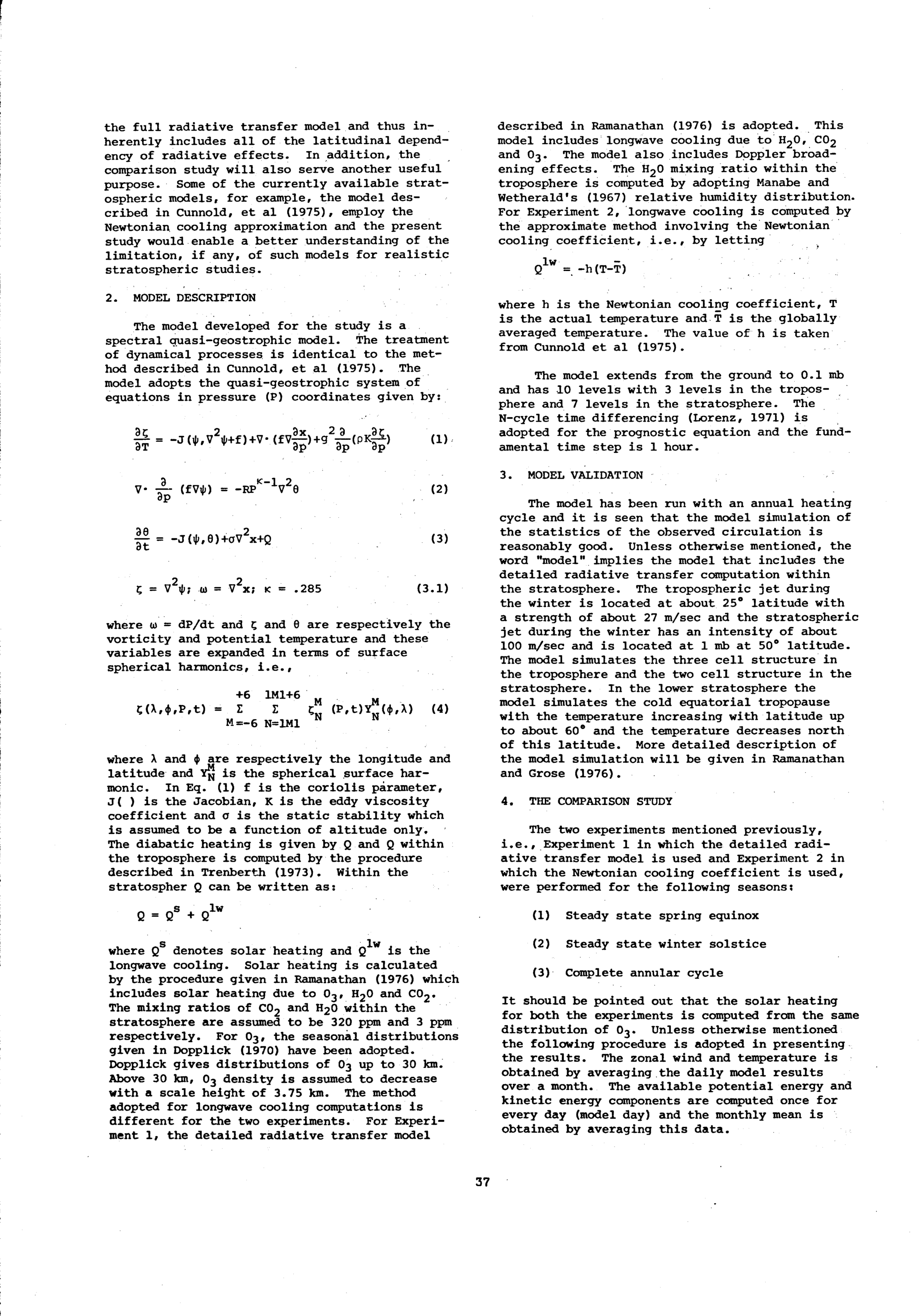 Session 1: Models for Numerical Weather Prediction and/or Simulation of the General Circulation Chairman: J. Smagorinsky, GFDL Princeton, USA