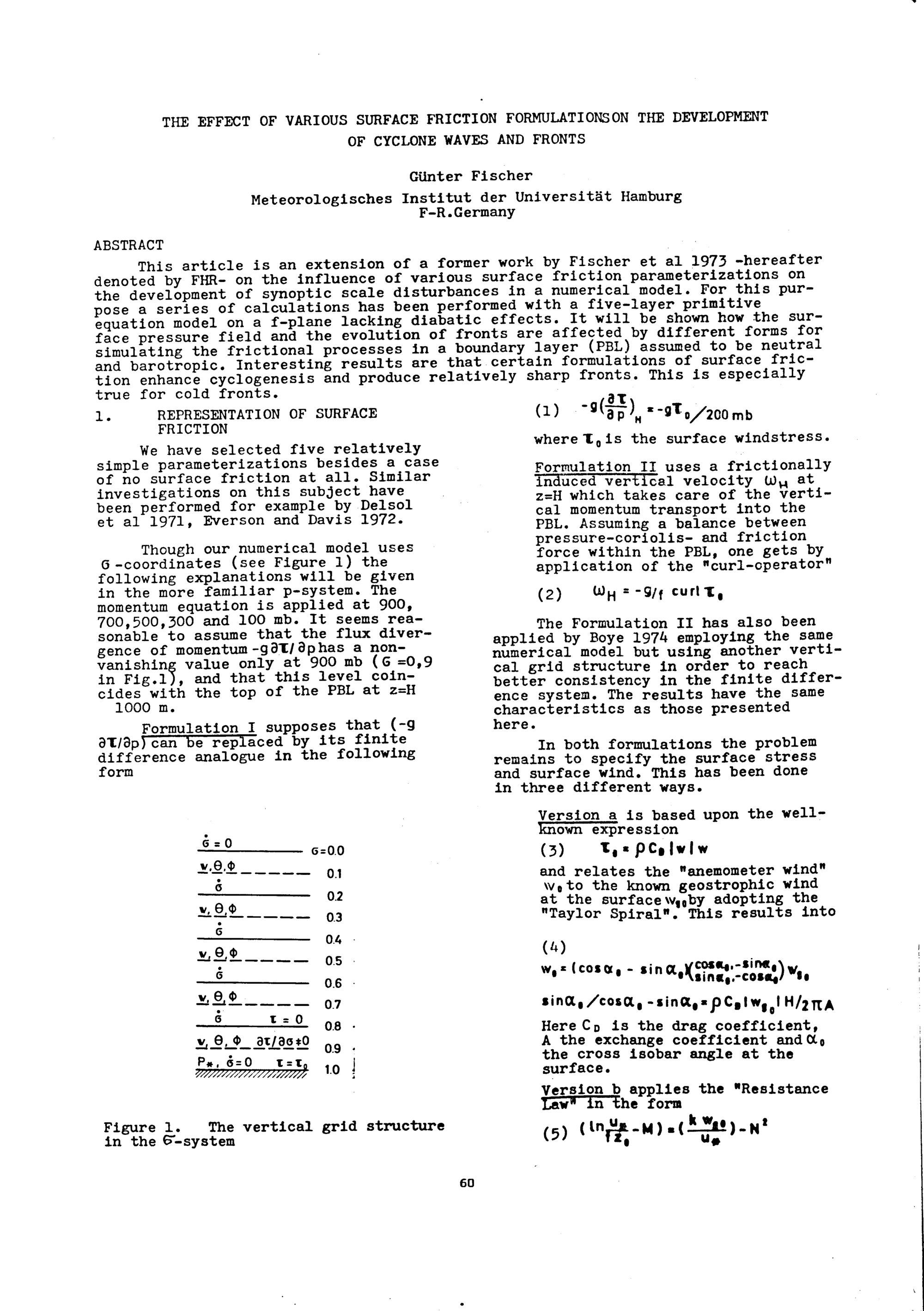 Session 1: Models for Numerical Weather Prediction and/or Simulation of the General Circulation Chairman: J. Smagorinsky, GFDL Princeton, USA