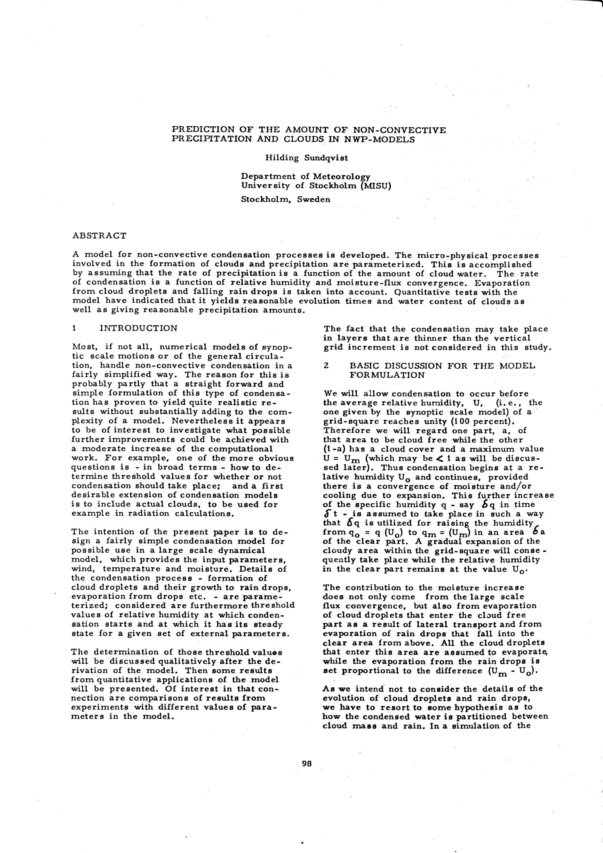 Session 2: Parameterization of Sub-Grid Processes Chairmen: W. Wiin Nielsen ECMWF, Bracknell, UK F. Wippermann, Technische Universität, Darmstadt, FRG