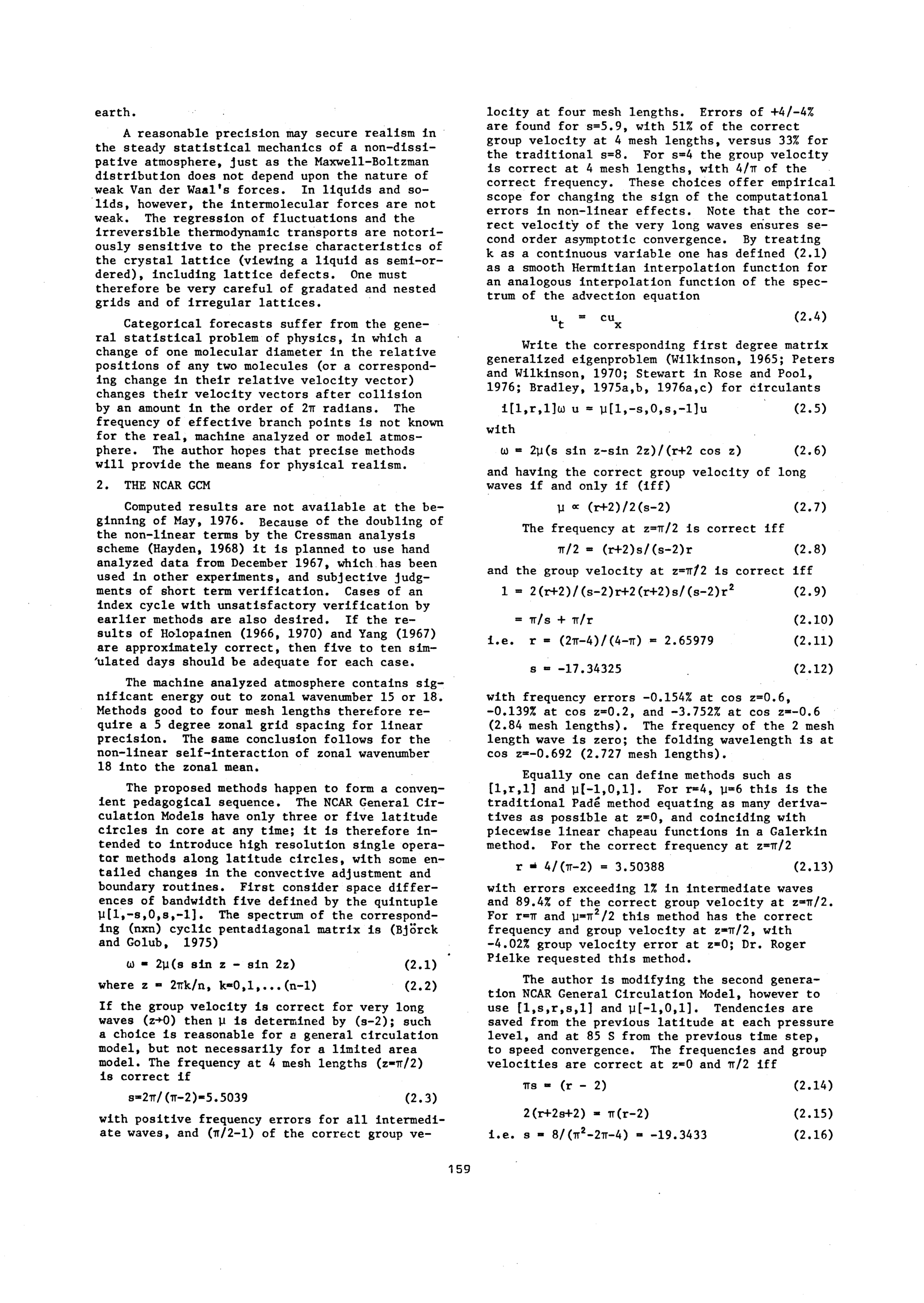 Session 1: Models for Numerical Weather Prediction and/or Simulation of the General Circulation Chairman: J. Smagorinsky, GFDL Princeton, USA