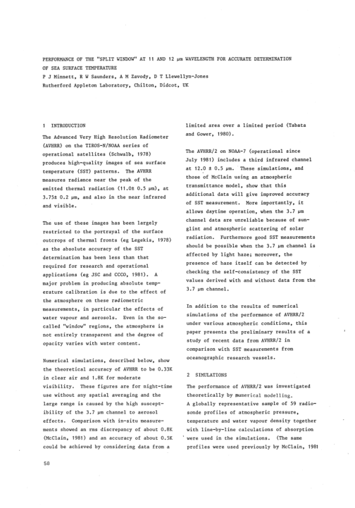 Performance of the "Split Window" at 11 and 12 lJm wavelengths for accurate determination...