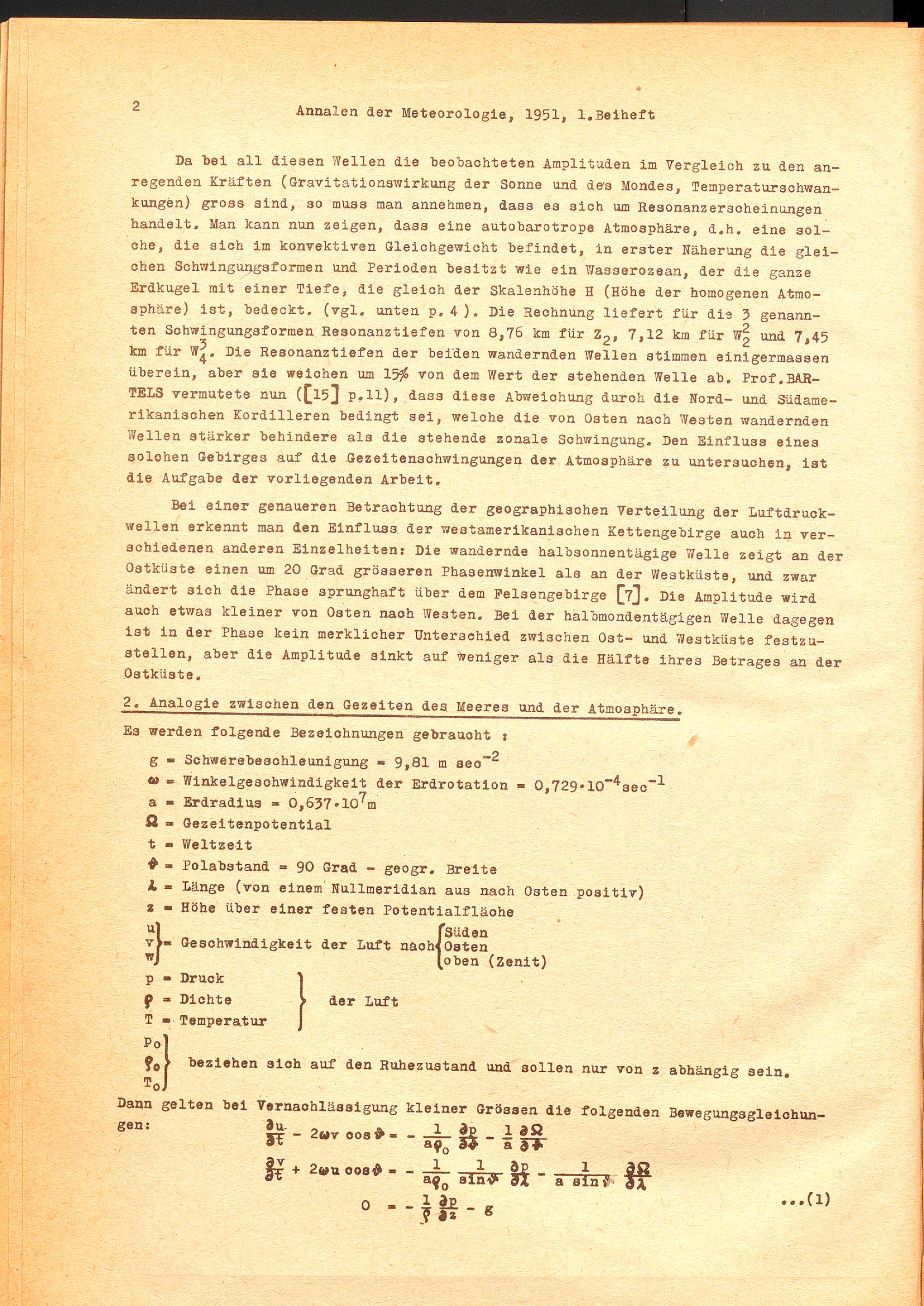 Theorie der gezeitenartigen Luftschwingungen als Eigenwertproblem / von Walter Kertz, Göttingen