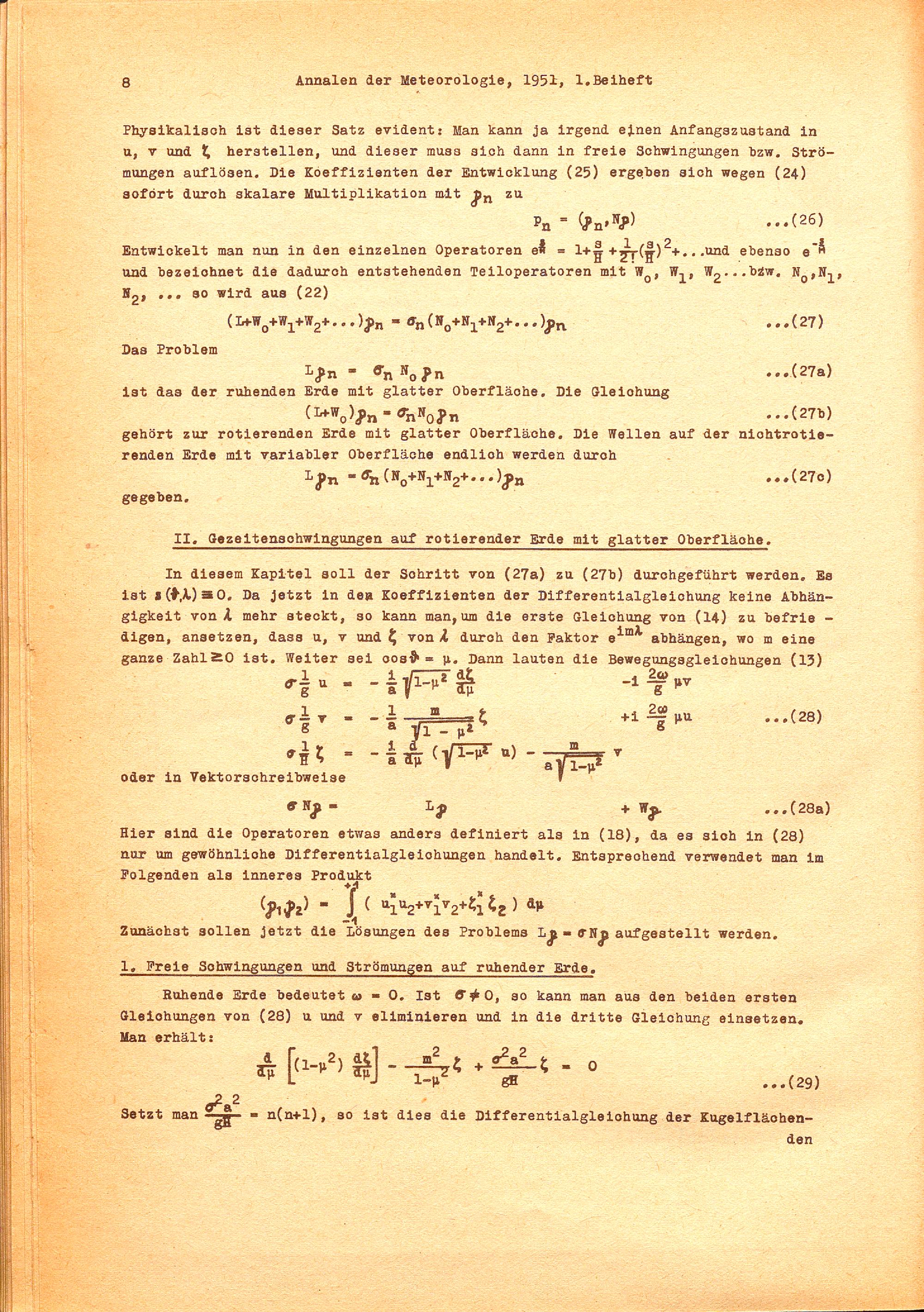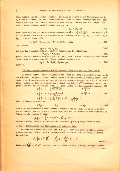 Theorie der gezeitenartigen Luftschwingungen als Eigenwertproblem / von Walter Kertz, Göttingen