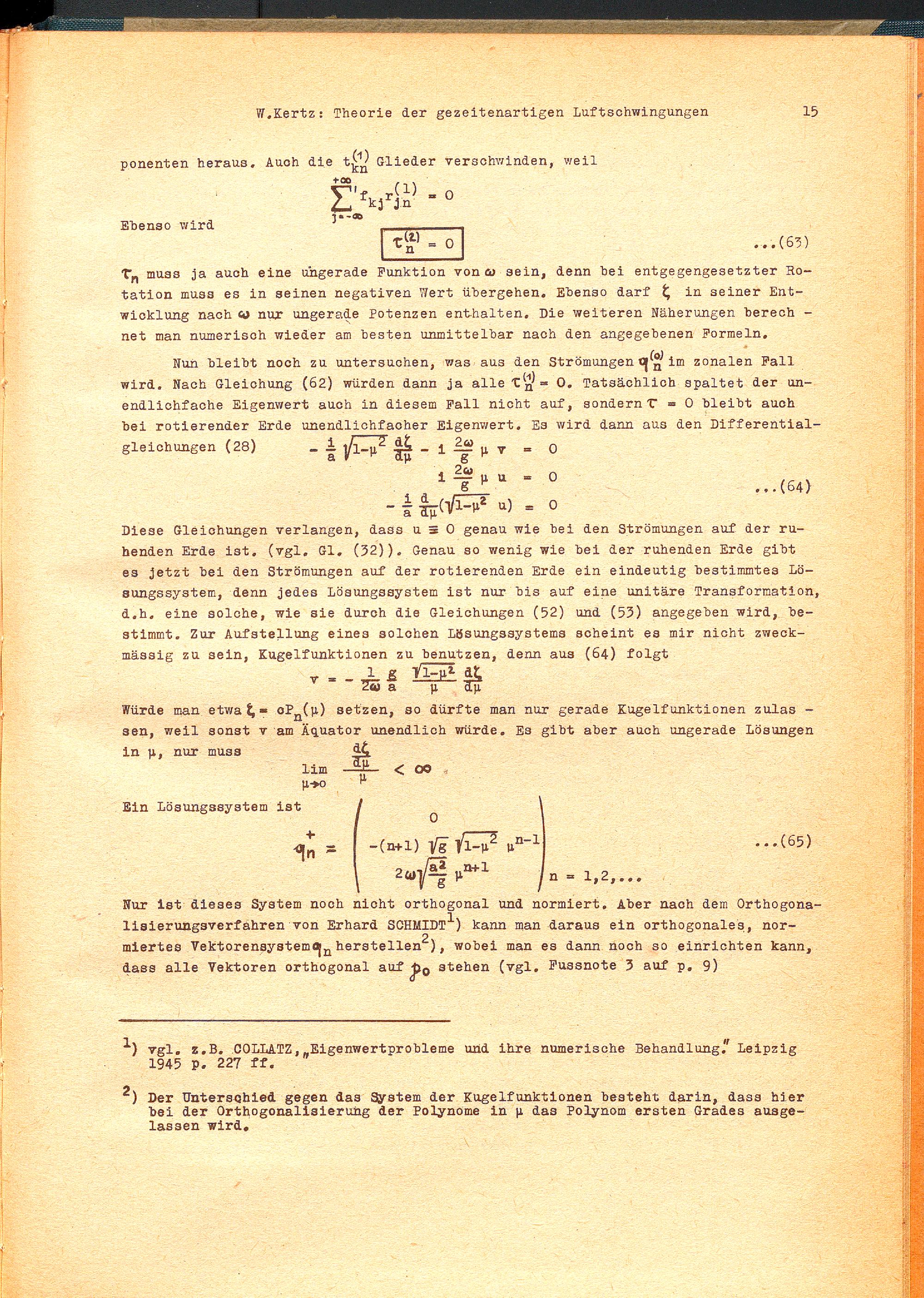 Theorie der gezeitenartigen Luftschwingungen als Eigenwertproblem / von Walter Kertz, Göttingen