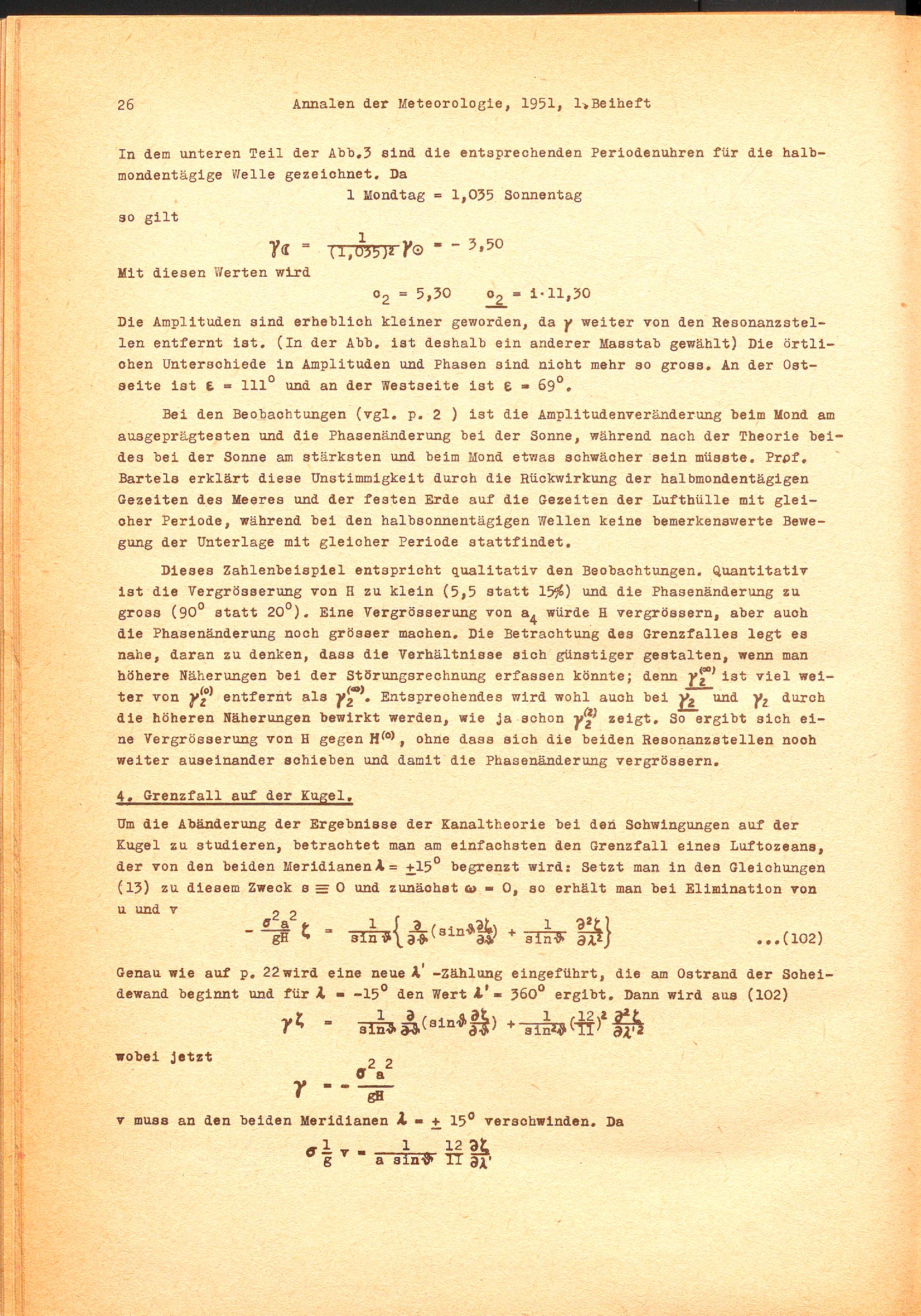 Theorie der gezeitenartigen Luftschwingungen als Eigenwertproblem / von Walter Kertz, Göttingen
