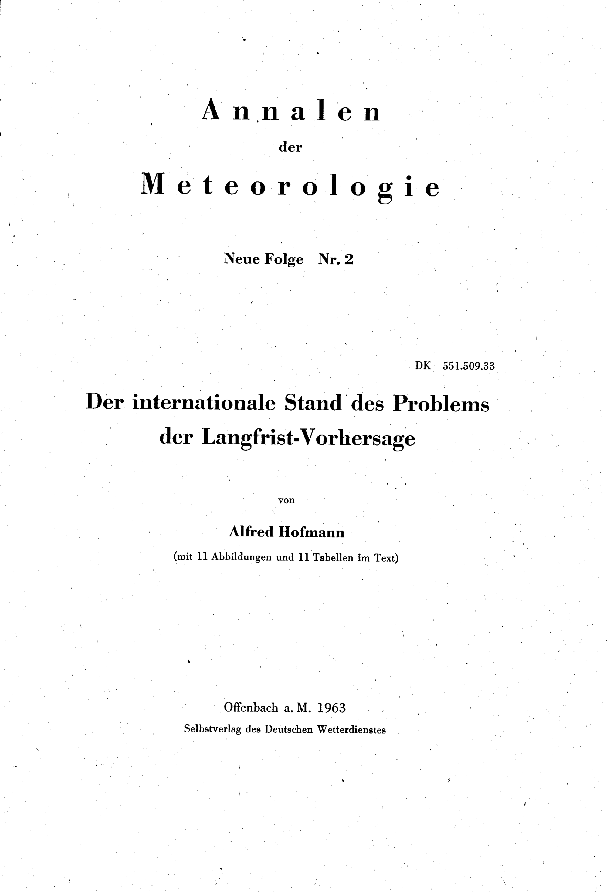 Der internationale Stand des Problems der Langfrist-Vorhersage