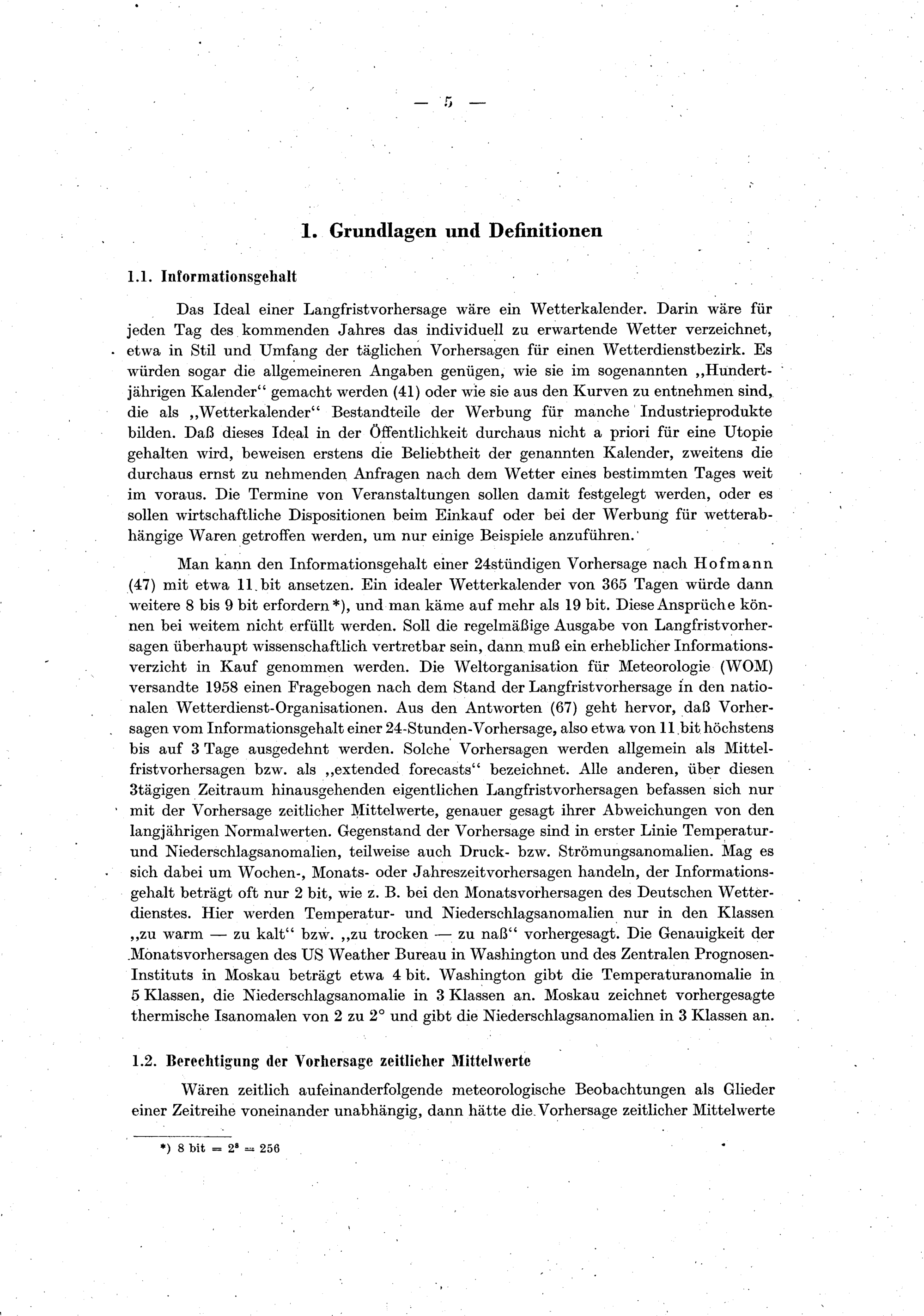 Der internationale Stand des Problems der Langfrist-Vorhersage