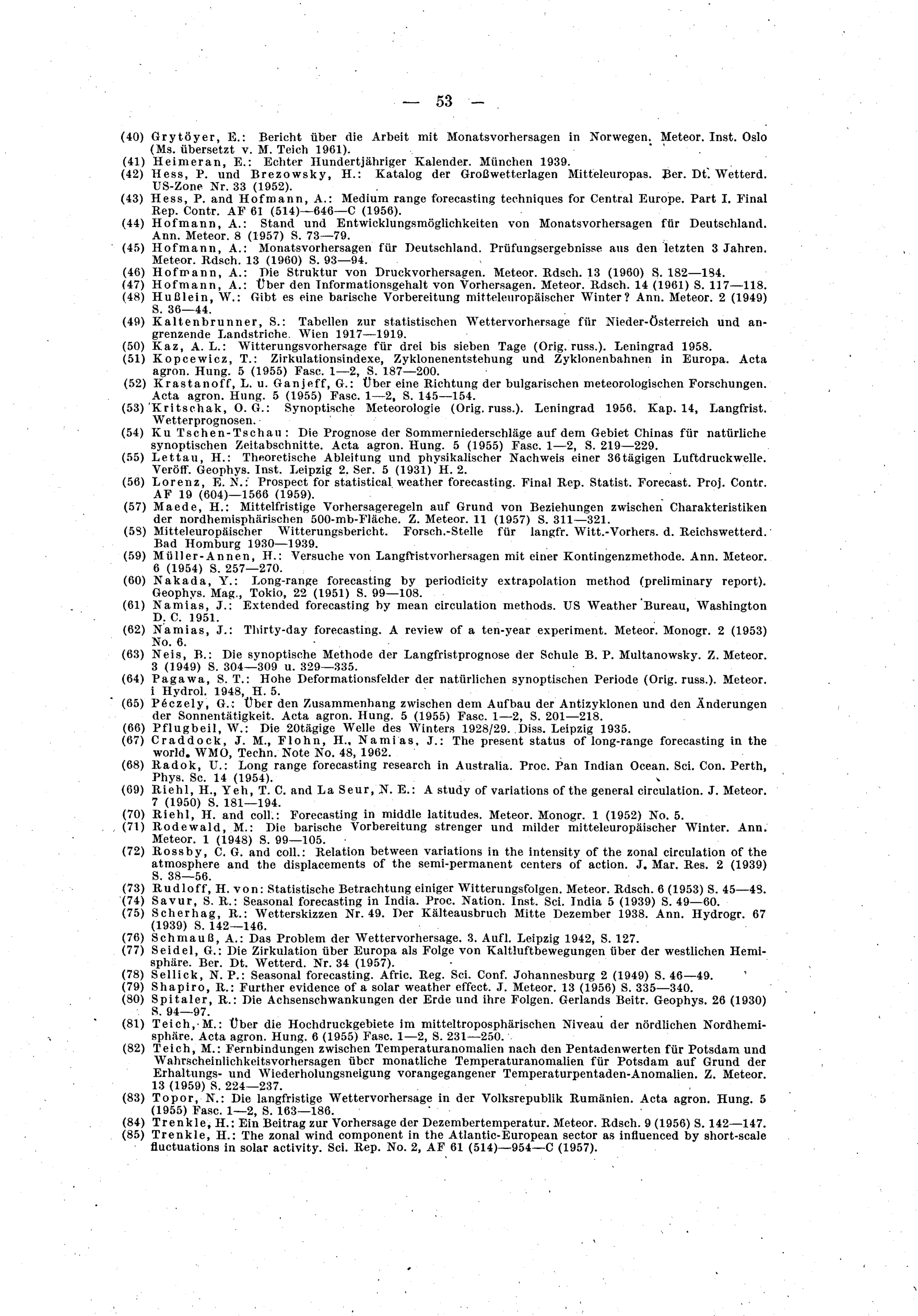 Der internationale Stand des Problems der Langfrist-Vorhersage