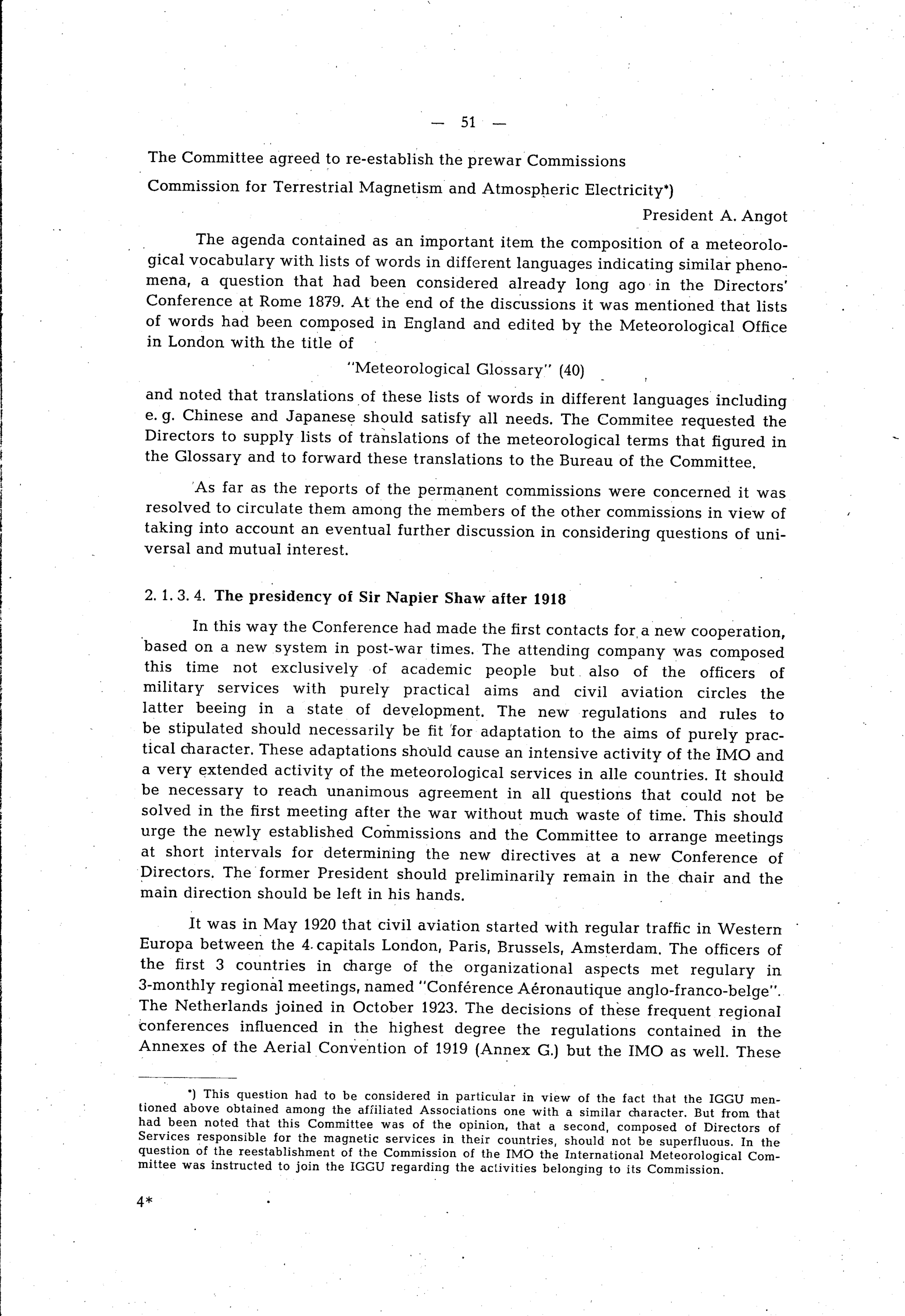 2. The years 1919-1935: The presidencies of Sir Napier Shaw and Prof. van Everdingen;...