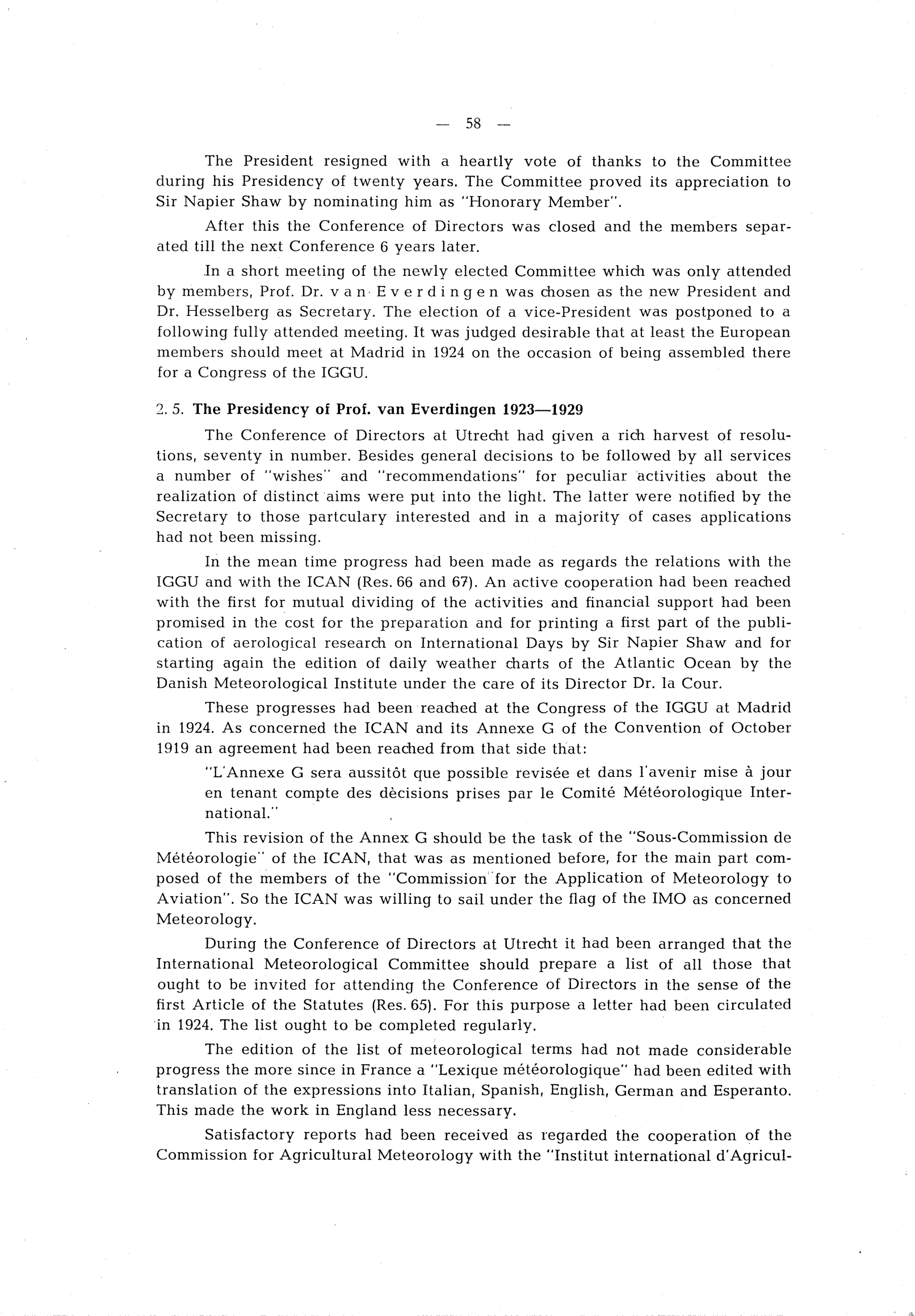 2. The years 1919-1935: The presidencies of Sir Napier Shaw and Prof. van Everdingen;...