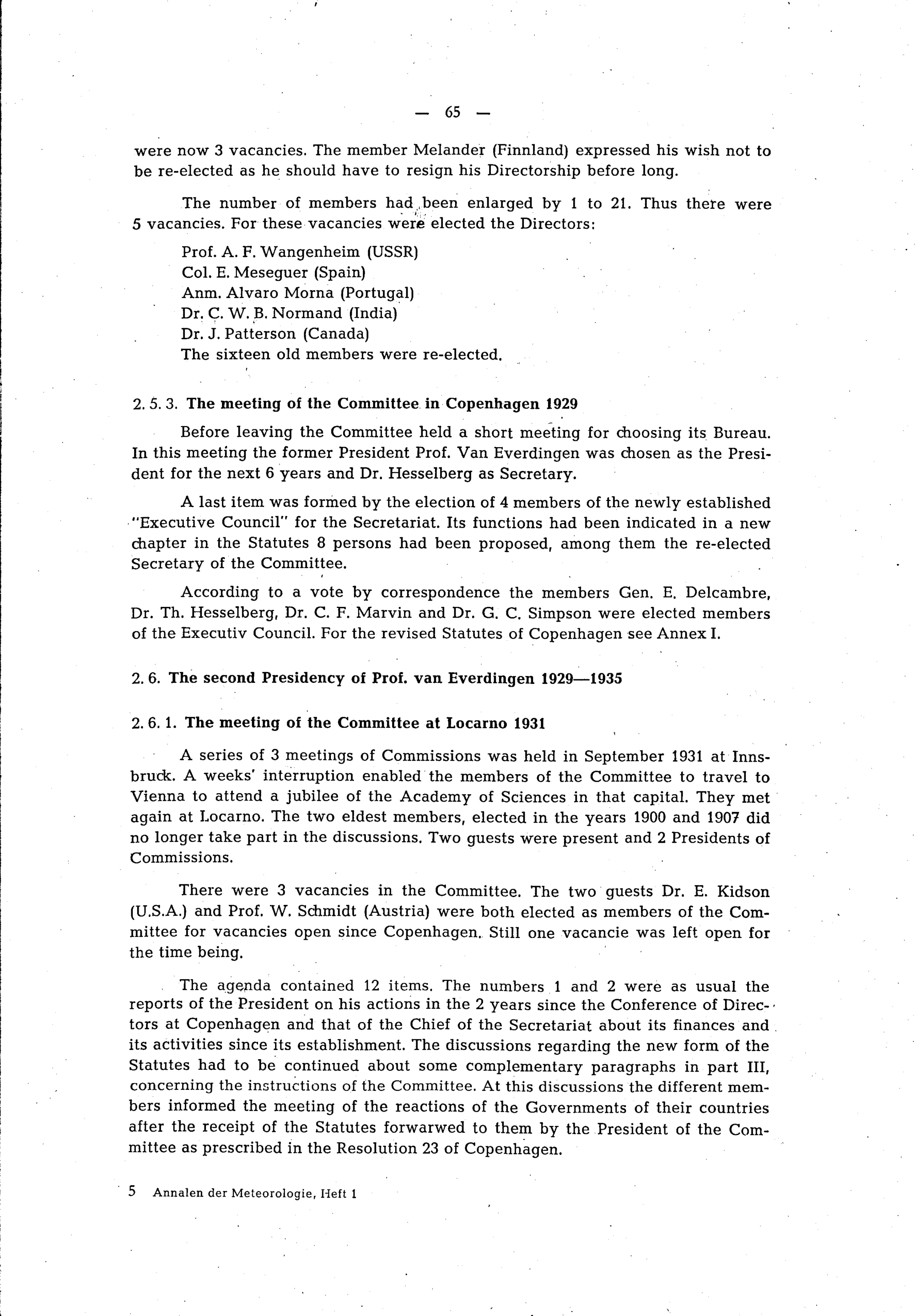 2. The years 1919-1935: The presidencies of Sir Napier Shaw and Prof. van Everdingen;...