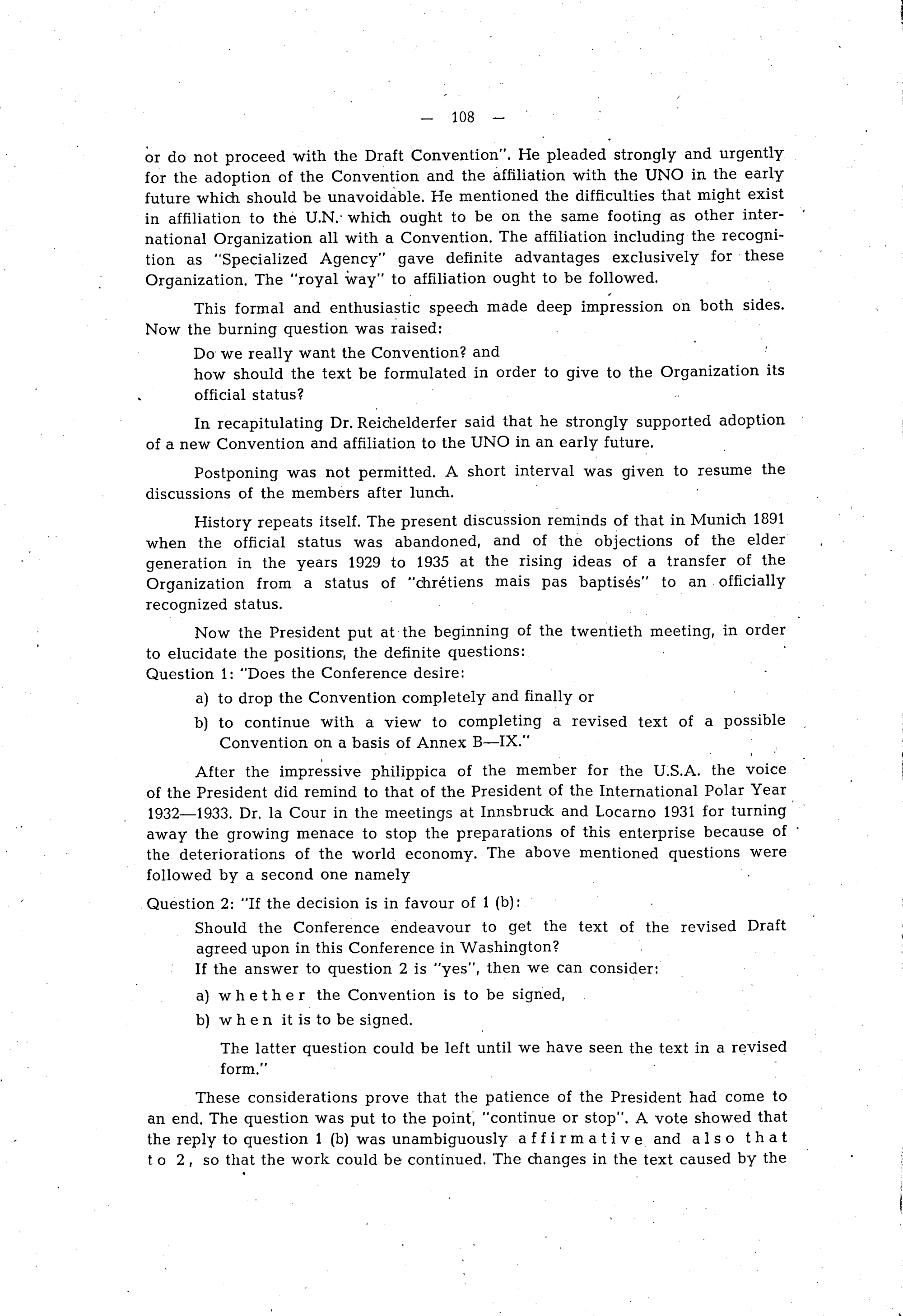 4. The years 1946-1951: The presidency of Sir Nelson Johnson; The adoption of a new...
