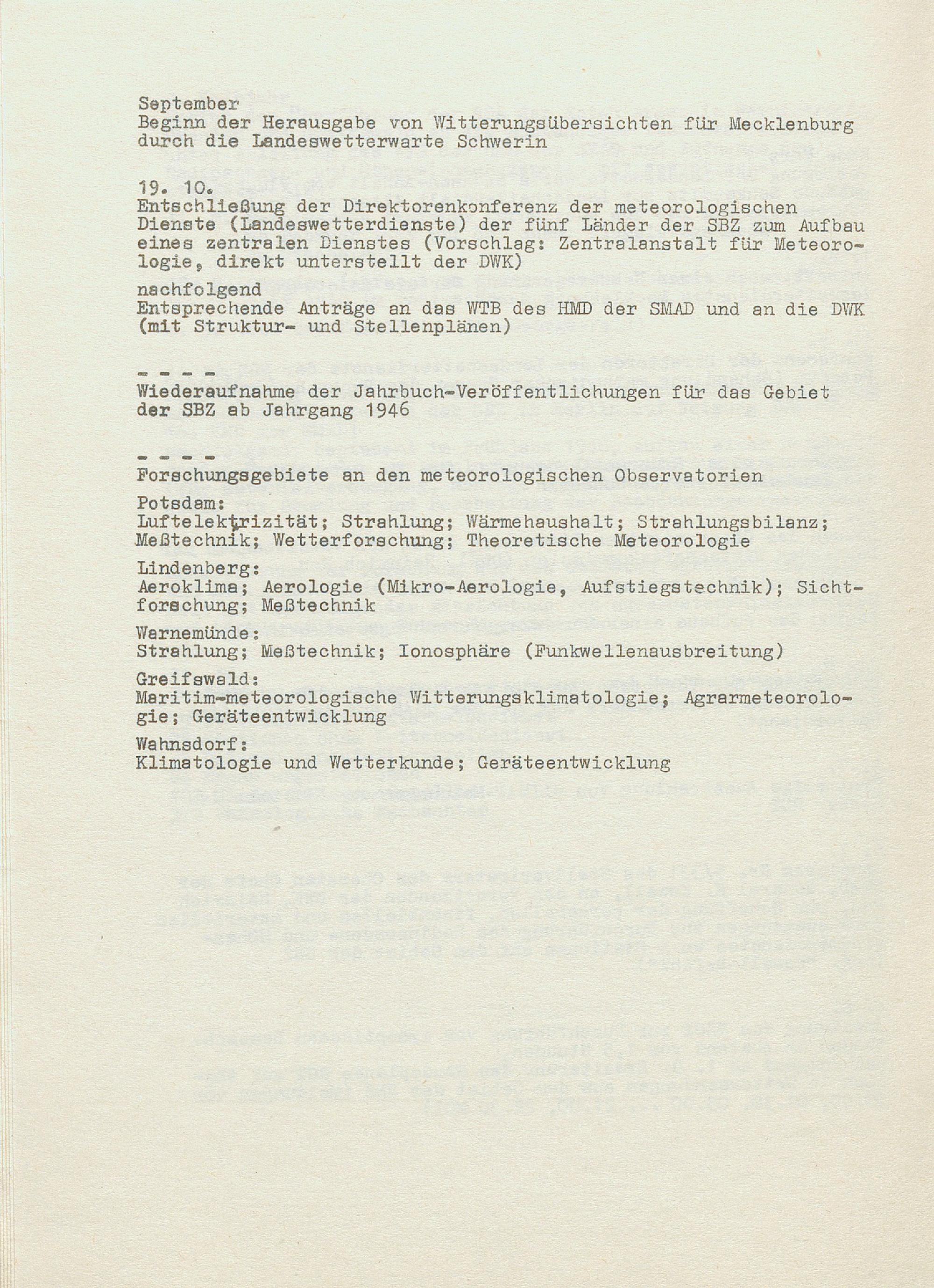 Wichtige Daten der Entwicklung des Meteorologischen Dienstes der DDR nach ihrer ...
