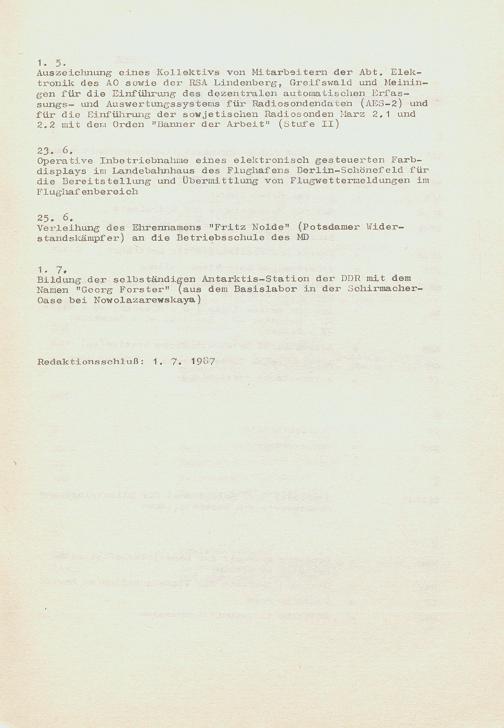 Wichtige Daten der Entwicklung des Meteorologischen Dienstes der DDR nach ihrer ...