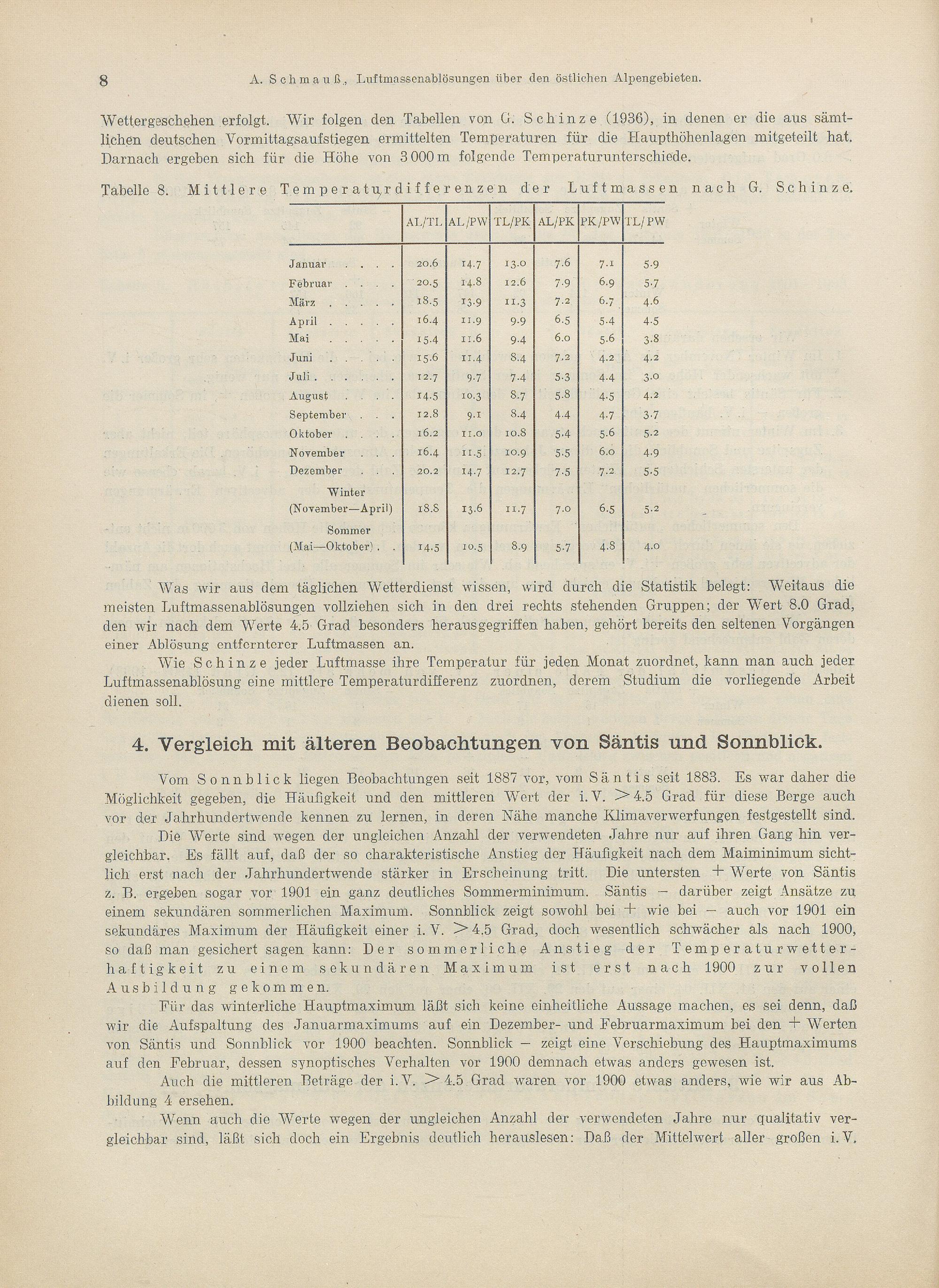 3. Mittlere Temperaturdifferenzen der Luftmassen