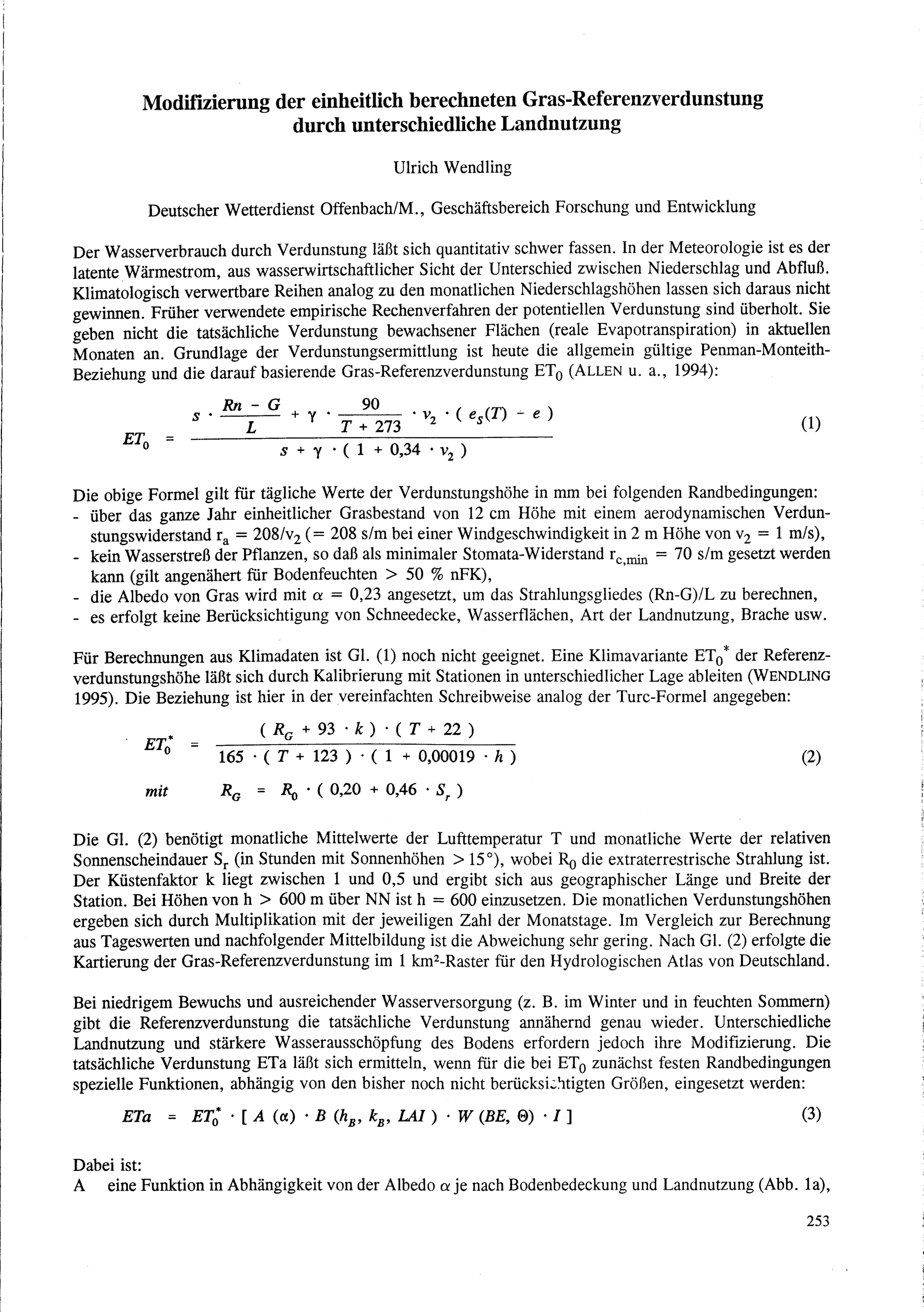 U. Wendling: Modifizierung der einheitlich berechneten Gras-Referenzverdunstung durch...