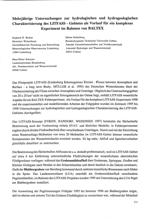 S. H. Richter, S. Schümberg, H.-D. Schreyer: Mehrjährige Untersuchungen zur hydrologischen...