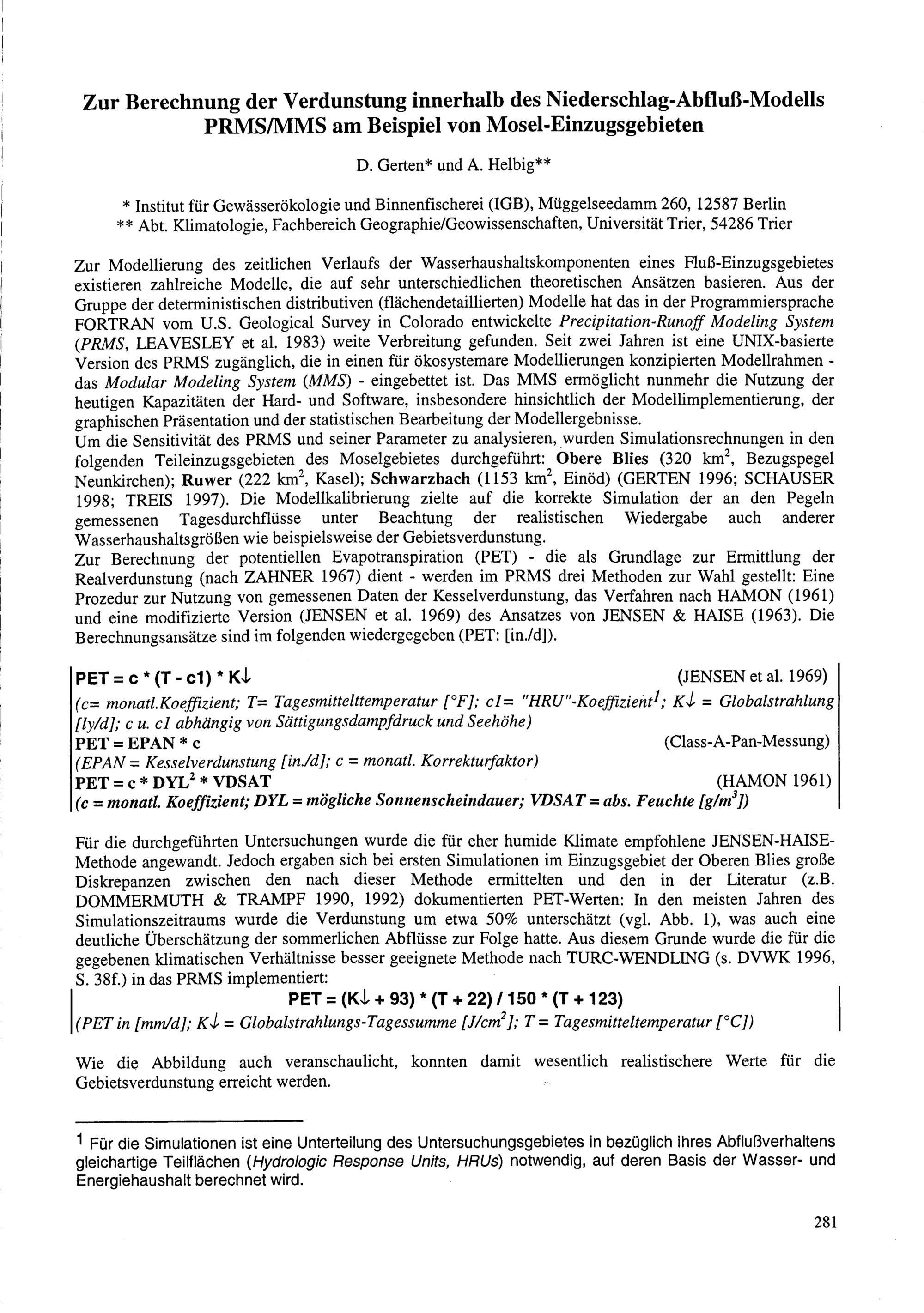 S. H. Richter, S. Schümberg, H.-D. Schreyer: Mehrjährige Untersuchungen zur hydrologischen...