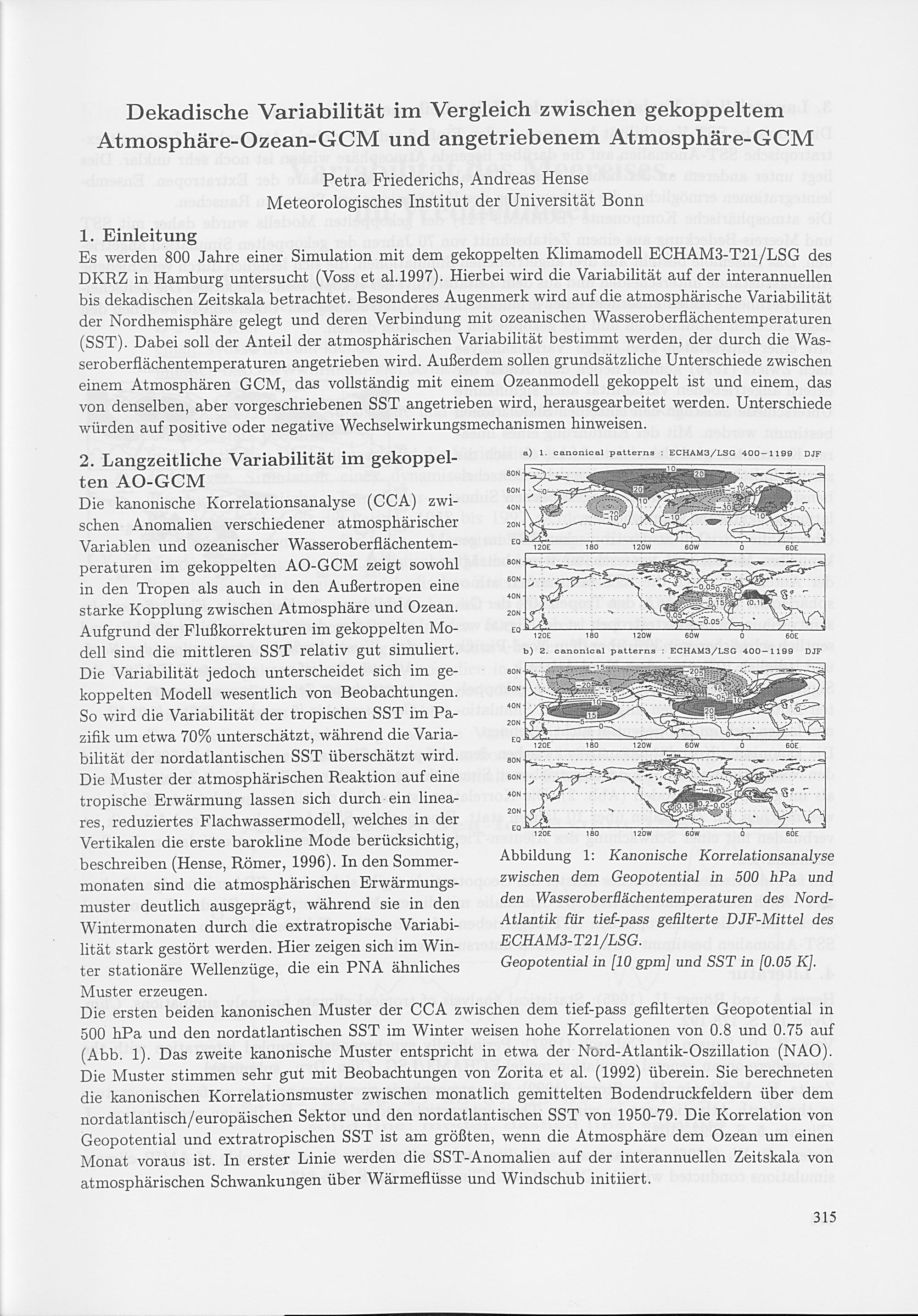 A. Hense, H. Paeth: Räumliche und zeitliche Struktur der Nordatlantik-Oszillation in Analysedaten des Deutschen Wetterdienstes und Modelldaten