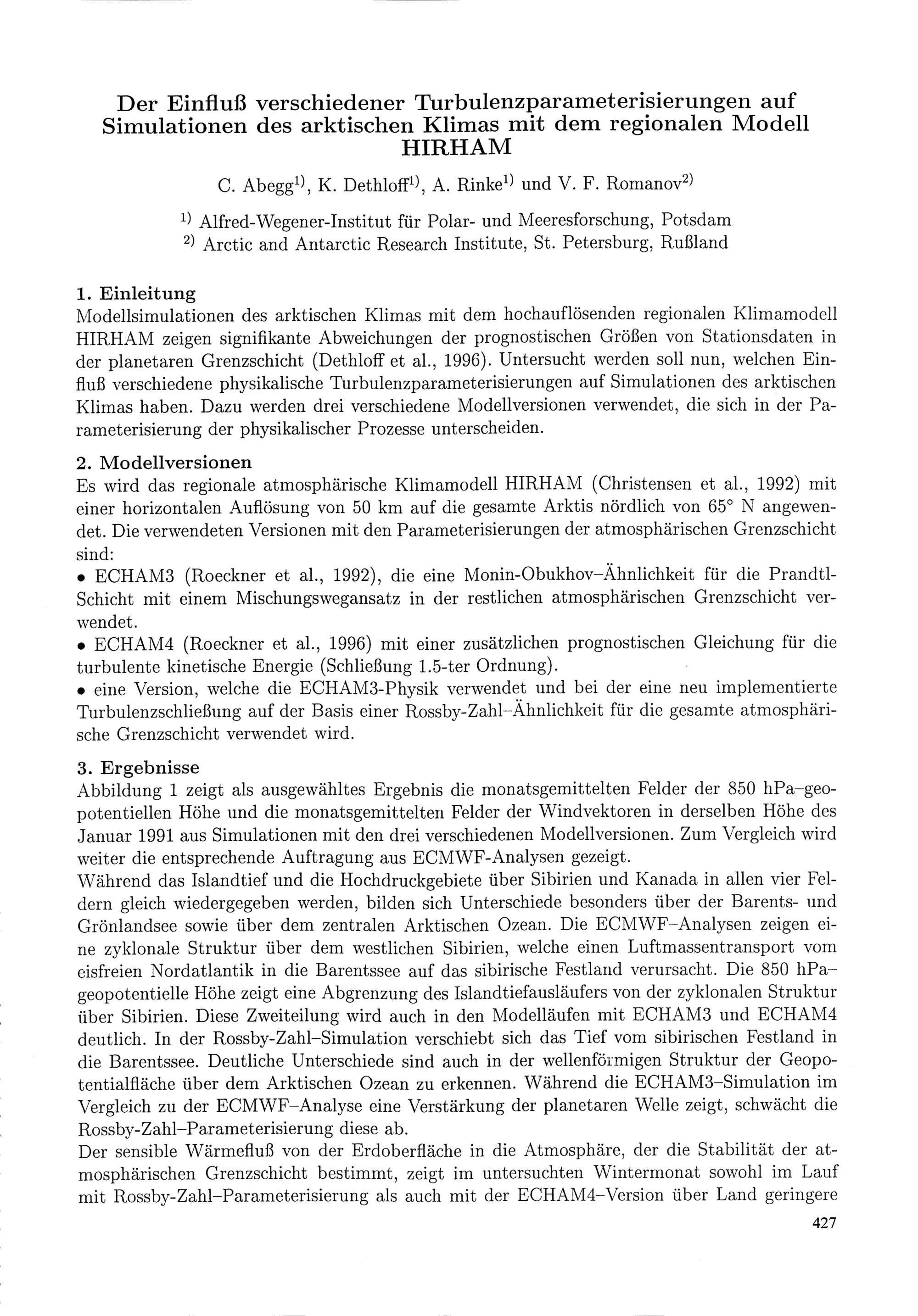 M.Göber: Die Feuchtebilanz der arktischen Atmosphäre basierend auf einem balancierten Windfeld unregelmäßig verteilter Beobachtungen
