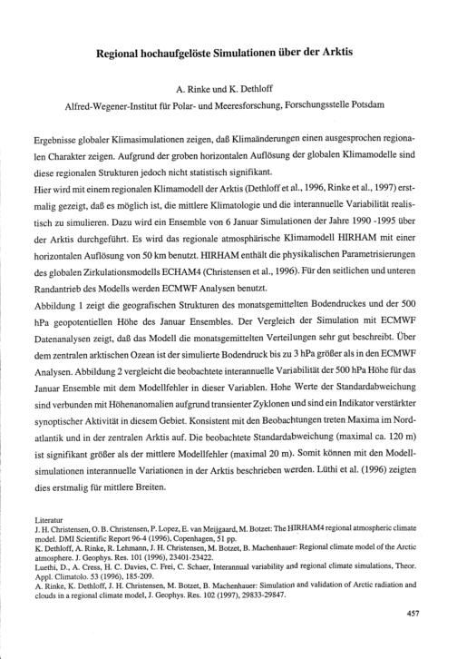 A. Hense, H. Paeth: Räumliche und zeitliche Struktur der Nordatlantik-Oszillation in Analysedaten des Deutschen Wetterdienstes und Modelldaten