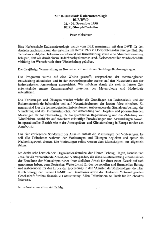 Herbstschule Radarmeteorologie 1998 : vom 2. bis 6. November 1998 in Oberpfaffenhofen